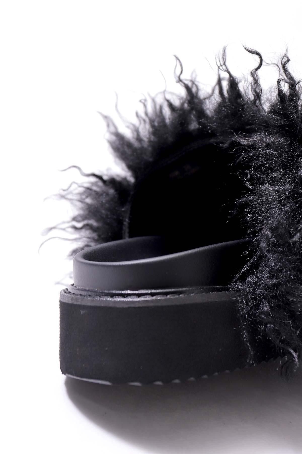 プードルのようなクリクリの毛足の長いエコファーが、目を惹くこのサンダル。