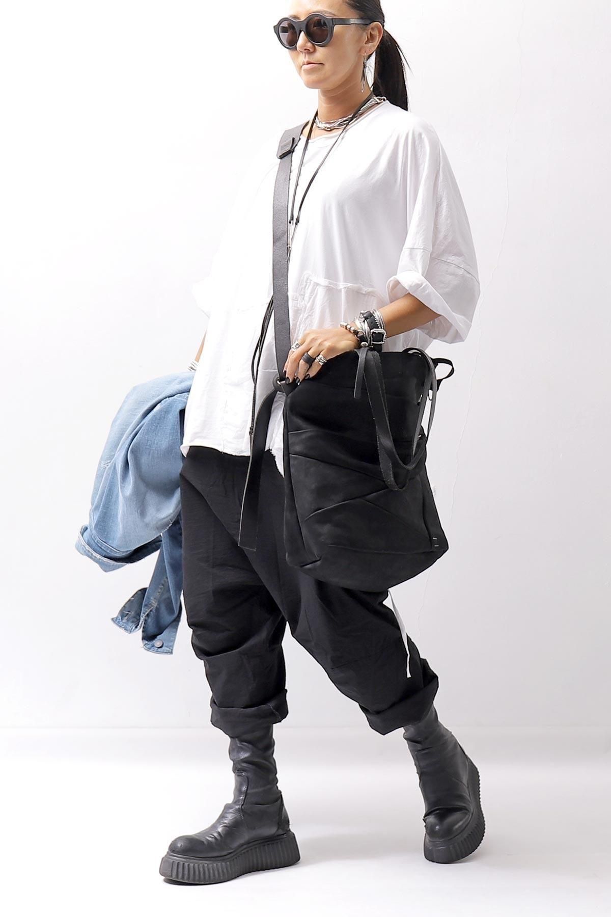 柔らかく、しなやかで軽さのあるレザーを重ねてパッチワーク風にすることで、重たいPCを入れても問題ないほどの強度で、デイリーにガンガン使えるバッグとしてオススメなバッグ!