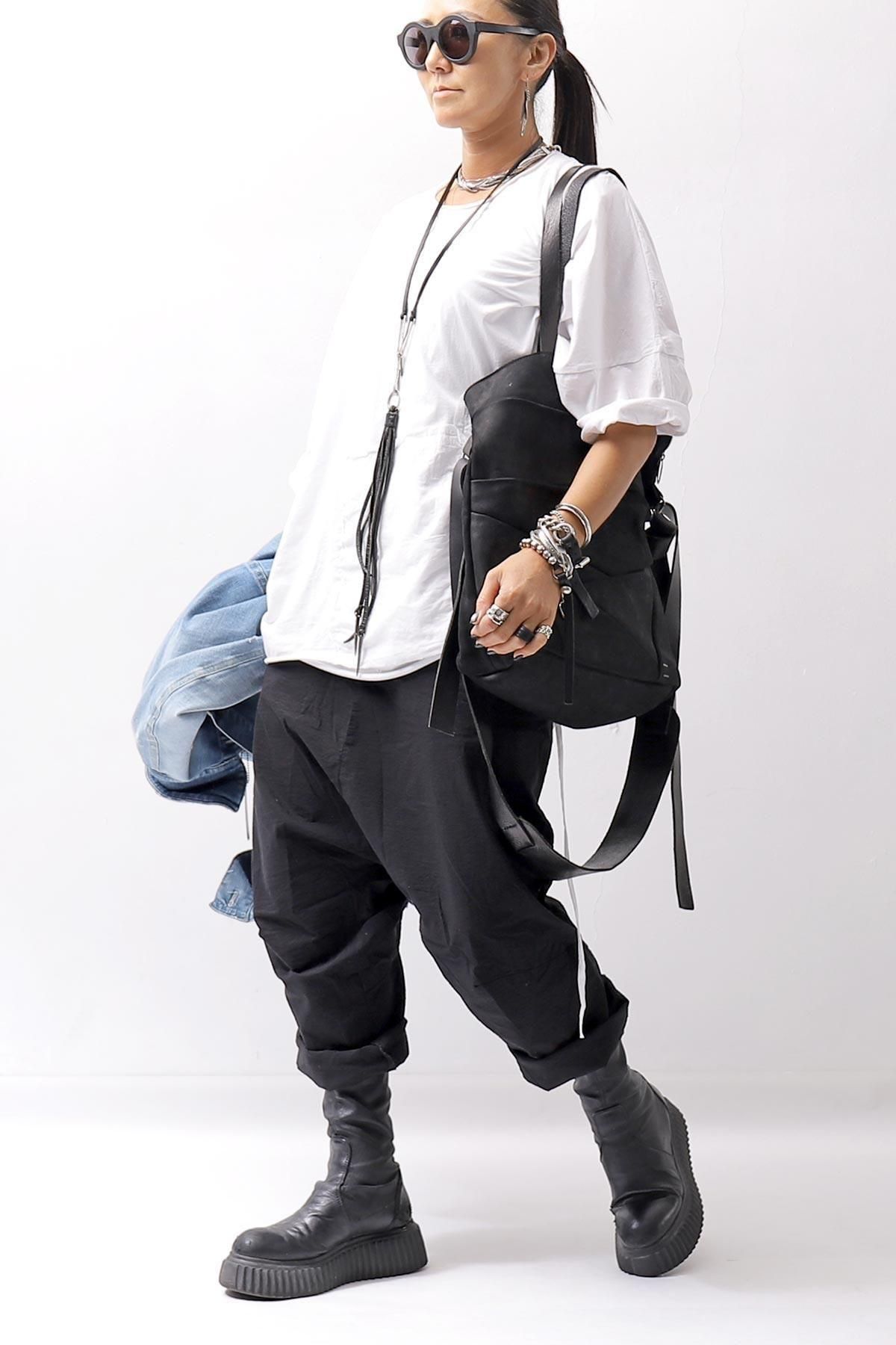 デザイナーのDanieleがPCを入れてデイリーに使っているこのバッグは、マットな表情の牛革ヌバックを使用。