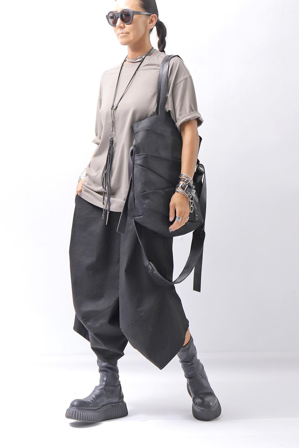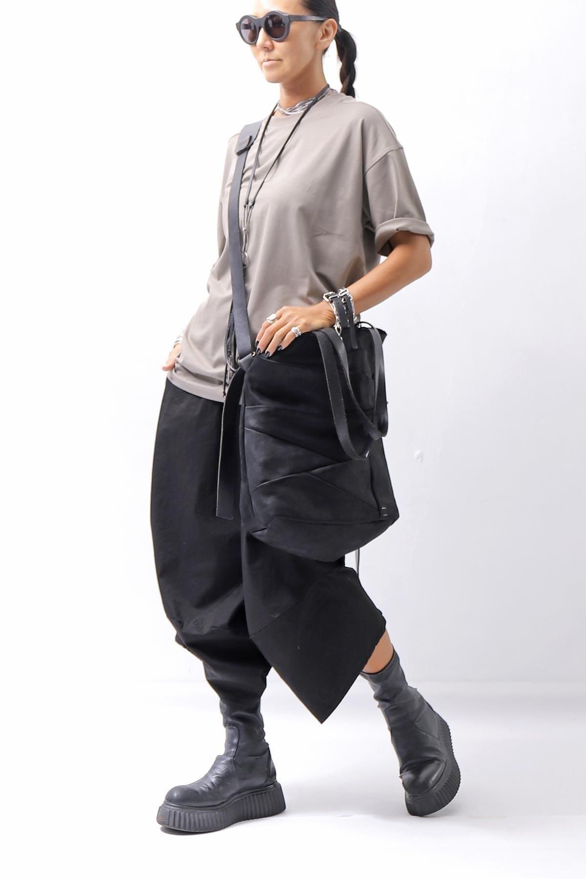 重ね合うような切り替えしのデザインが、使い勝手の良いベーシックなカタチの中で映えるのがポイントに。