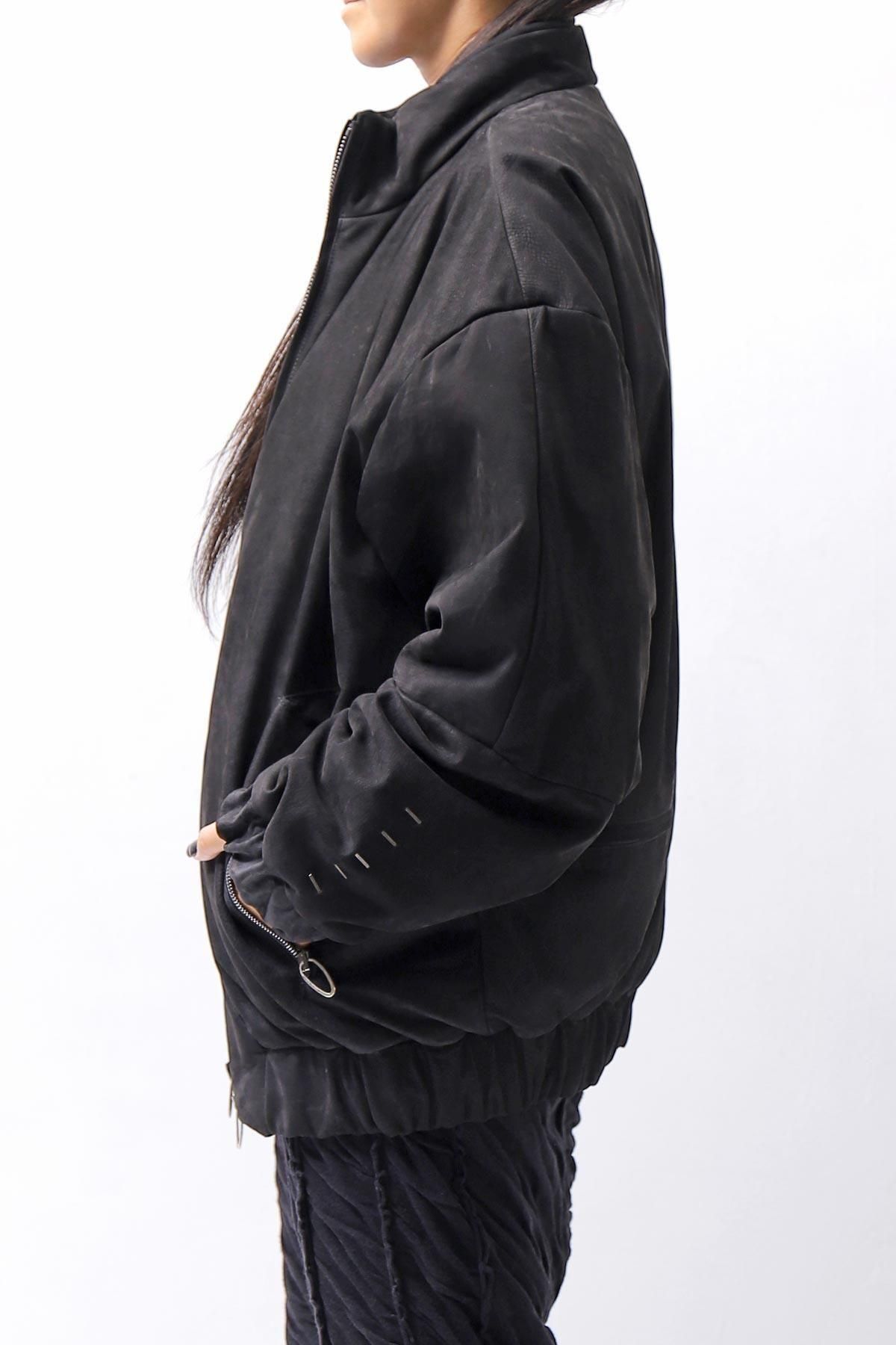 マットな質感の牛革ヌバックを使用したこのジャケット。