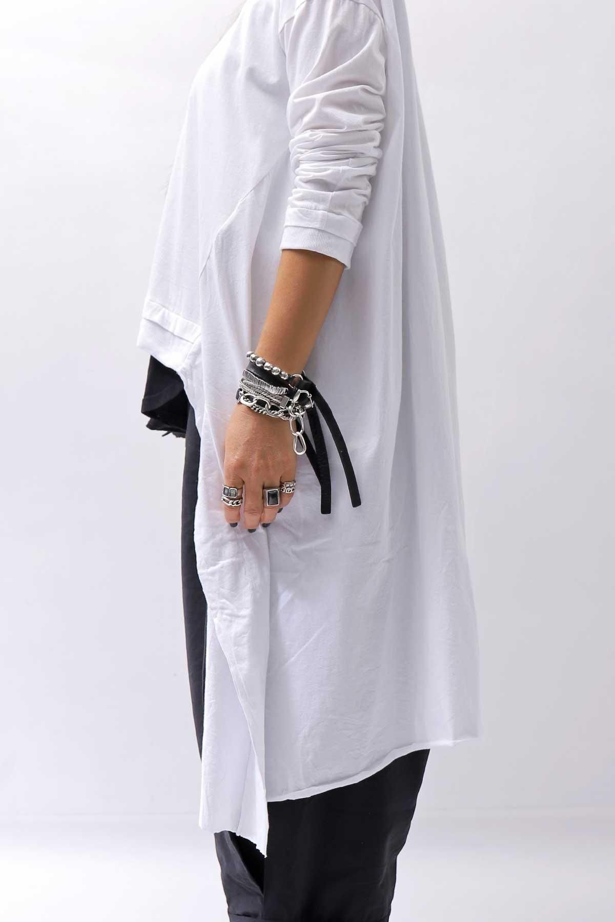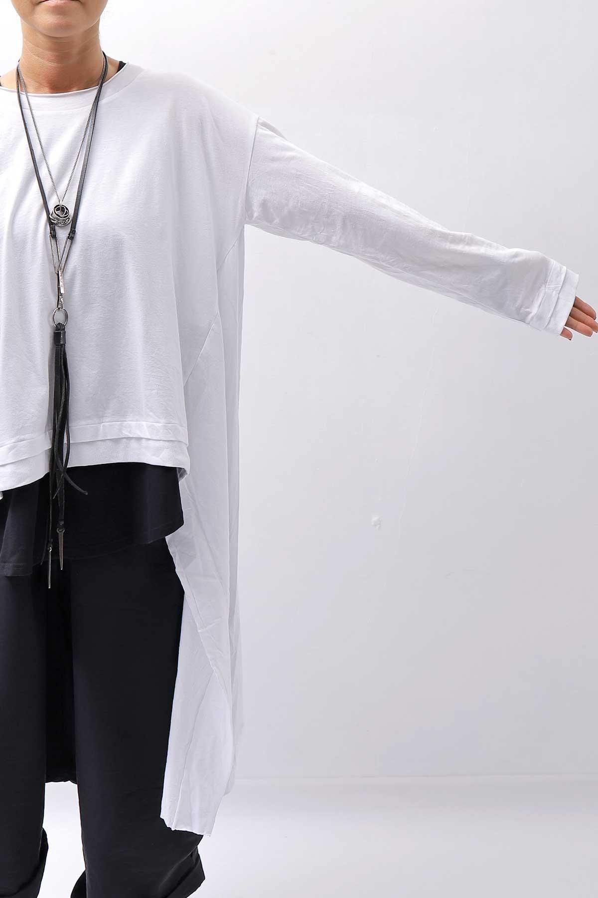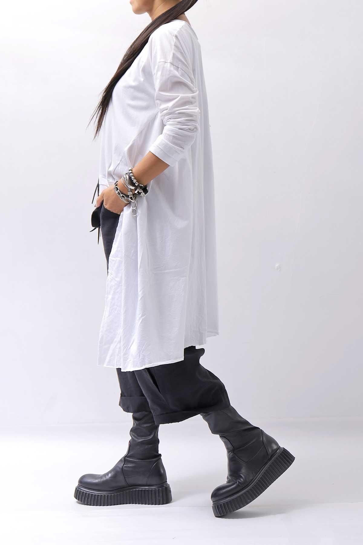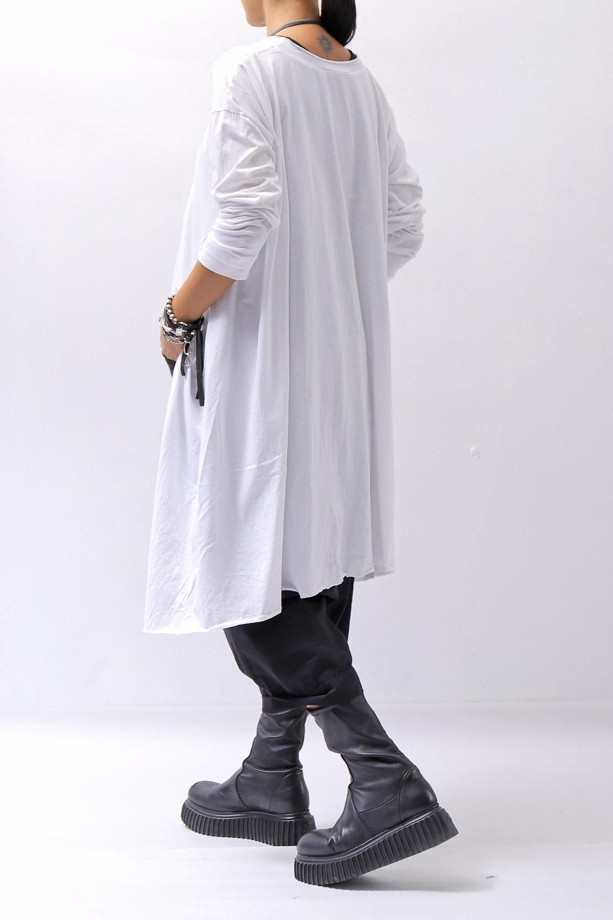 分厚すぎず薄すぎない、白でも透け感のない生地厚で、一枚で着たときでもスタイリングに雰囲気が出るトップスとして是非手にして欲しいアイテム!