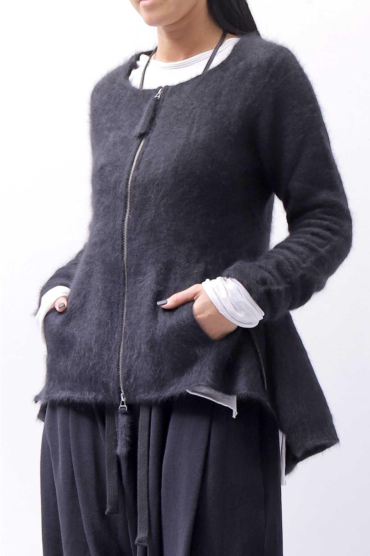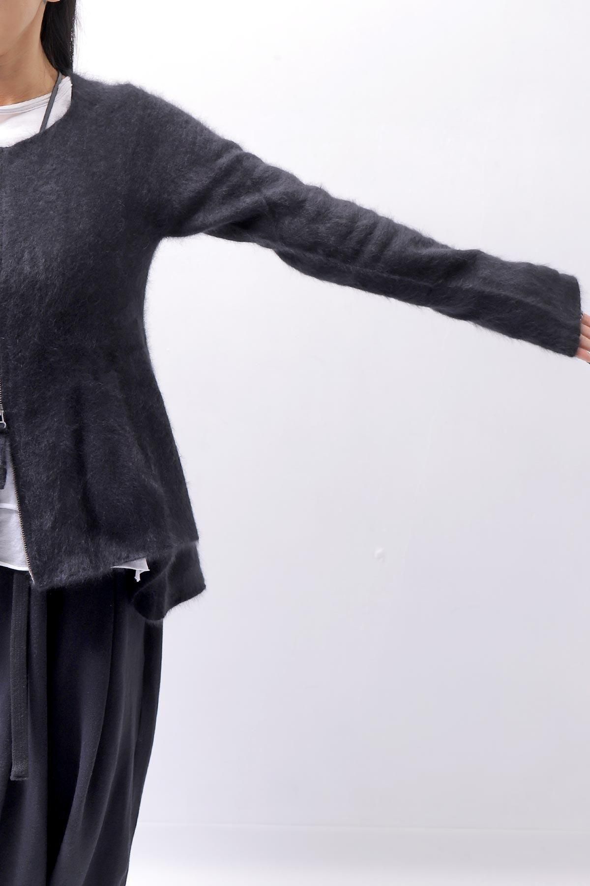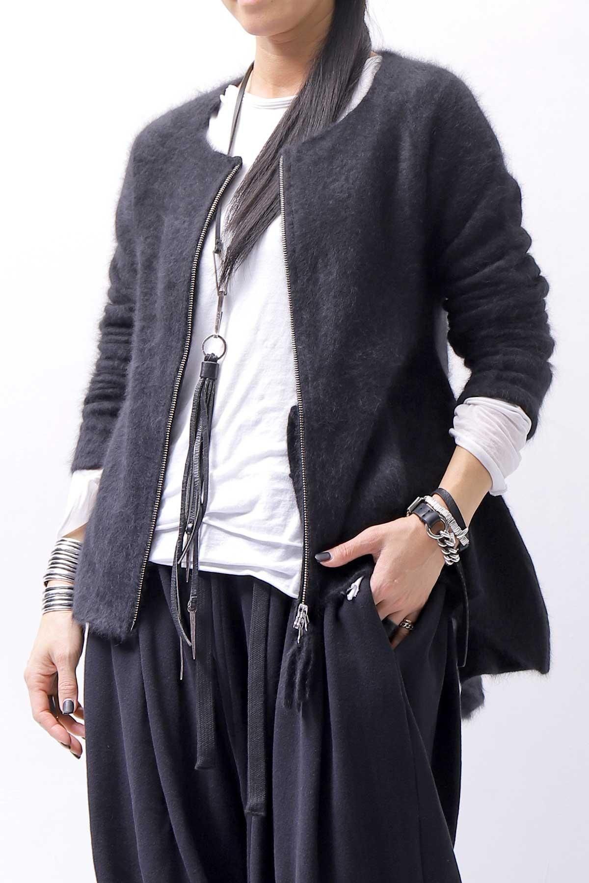 A zip-up cardigan jacket with a silhouette like a colorless jacket.
