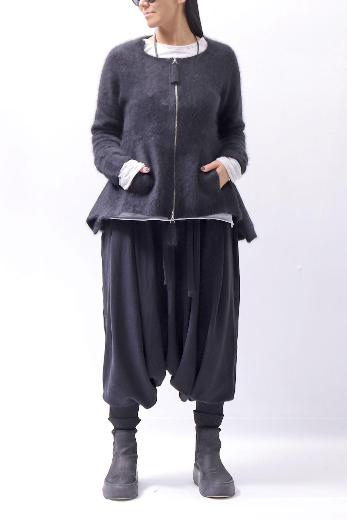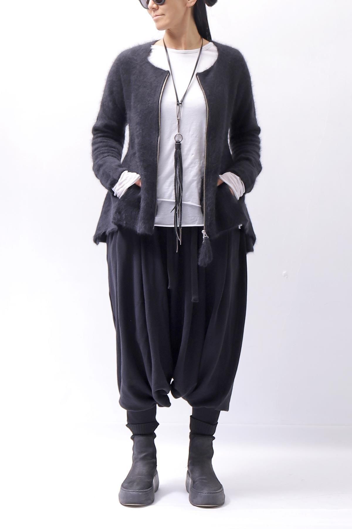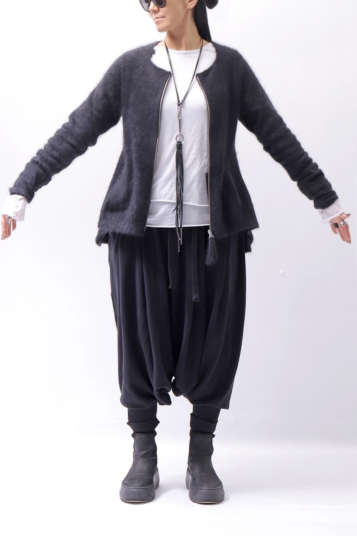 A zip-up cardigan jacket with a silhouette like a colorless jacket.