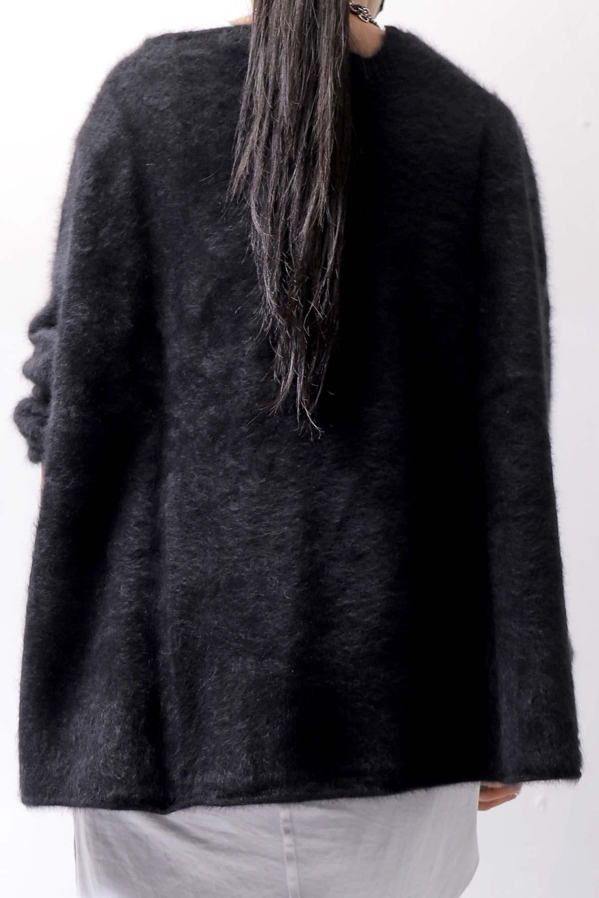 This knit top, with its relaxed width and low back, is not only perfect with trousers but is also well-balanced when worn over a dress.