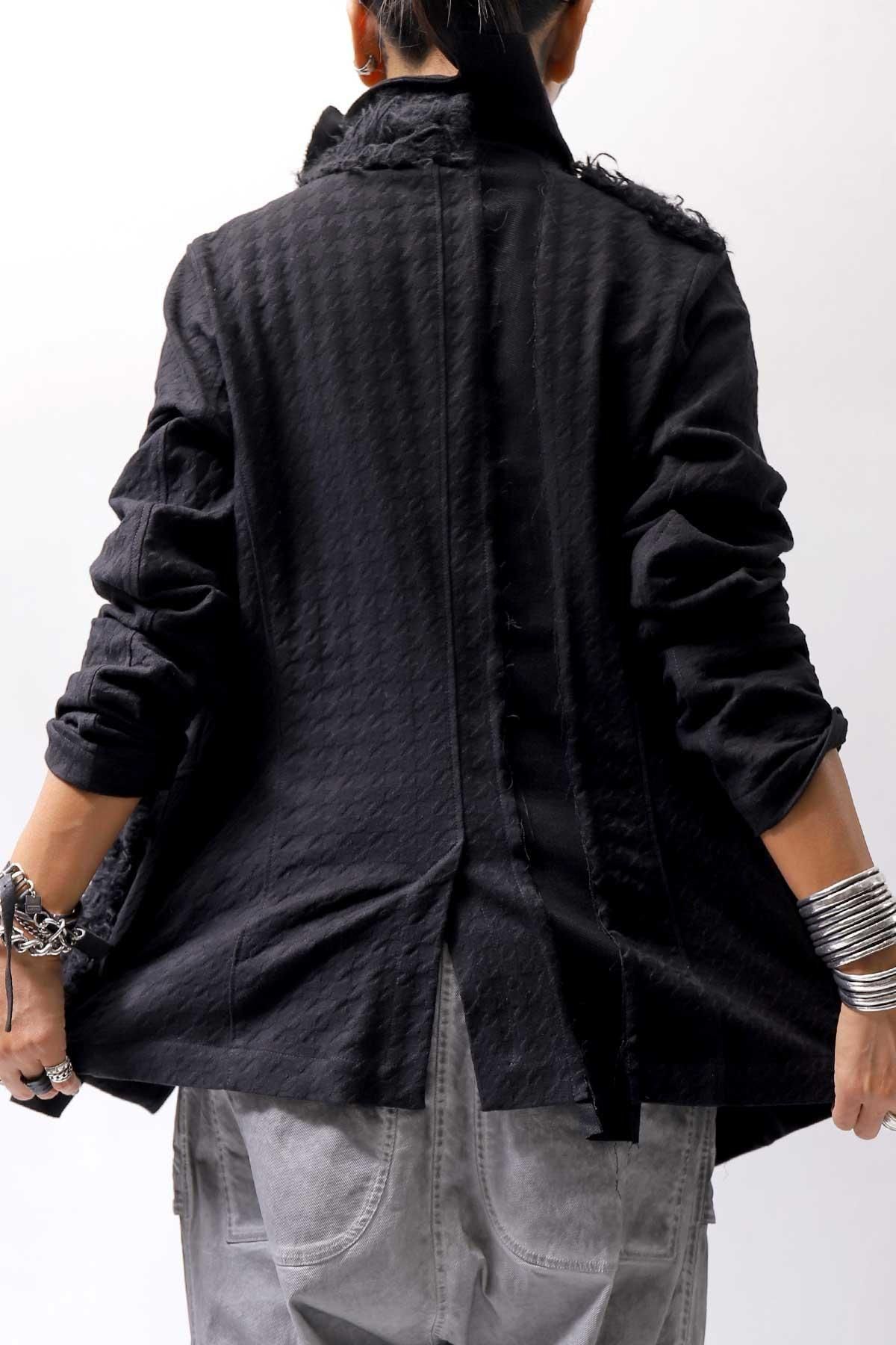 そして、背中やフロントには千鳥格子のようなエンボスのリネンヴィスコース素材でサラっと。