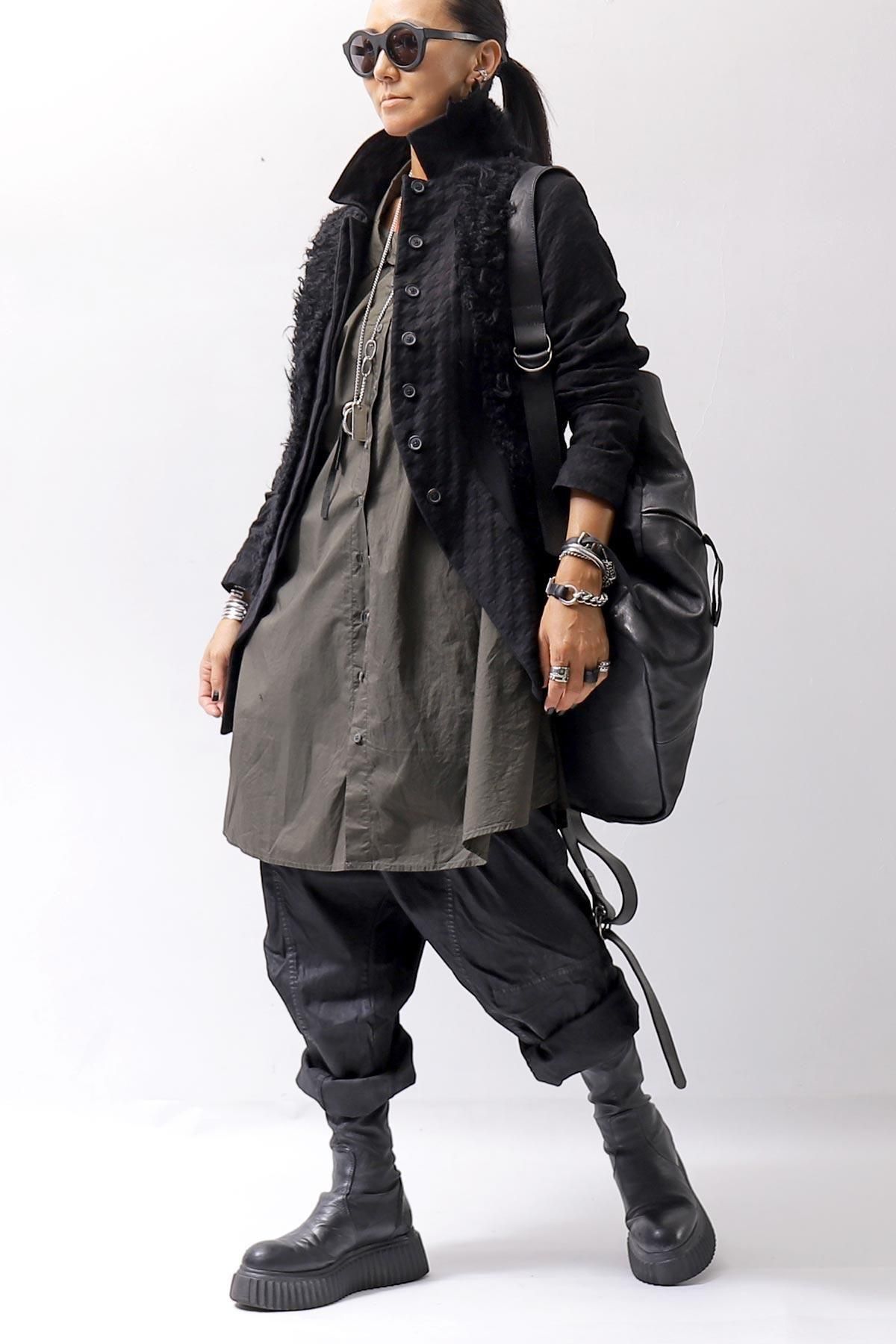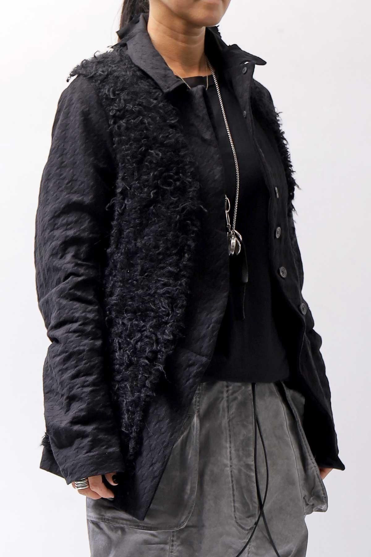 首元からアルパカをベースとした毛足の短いファーがフロントに。
