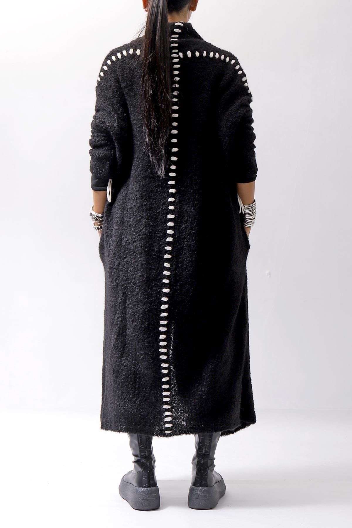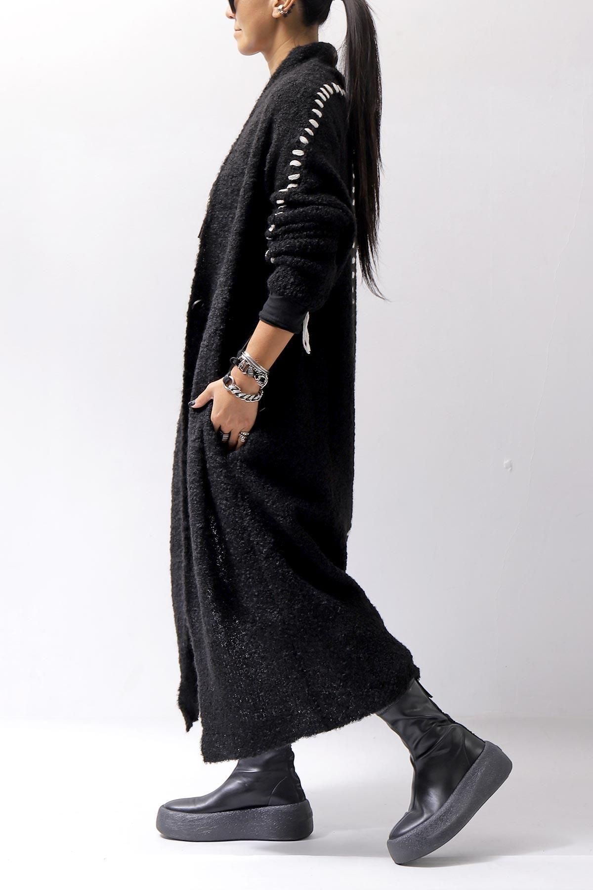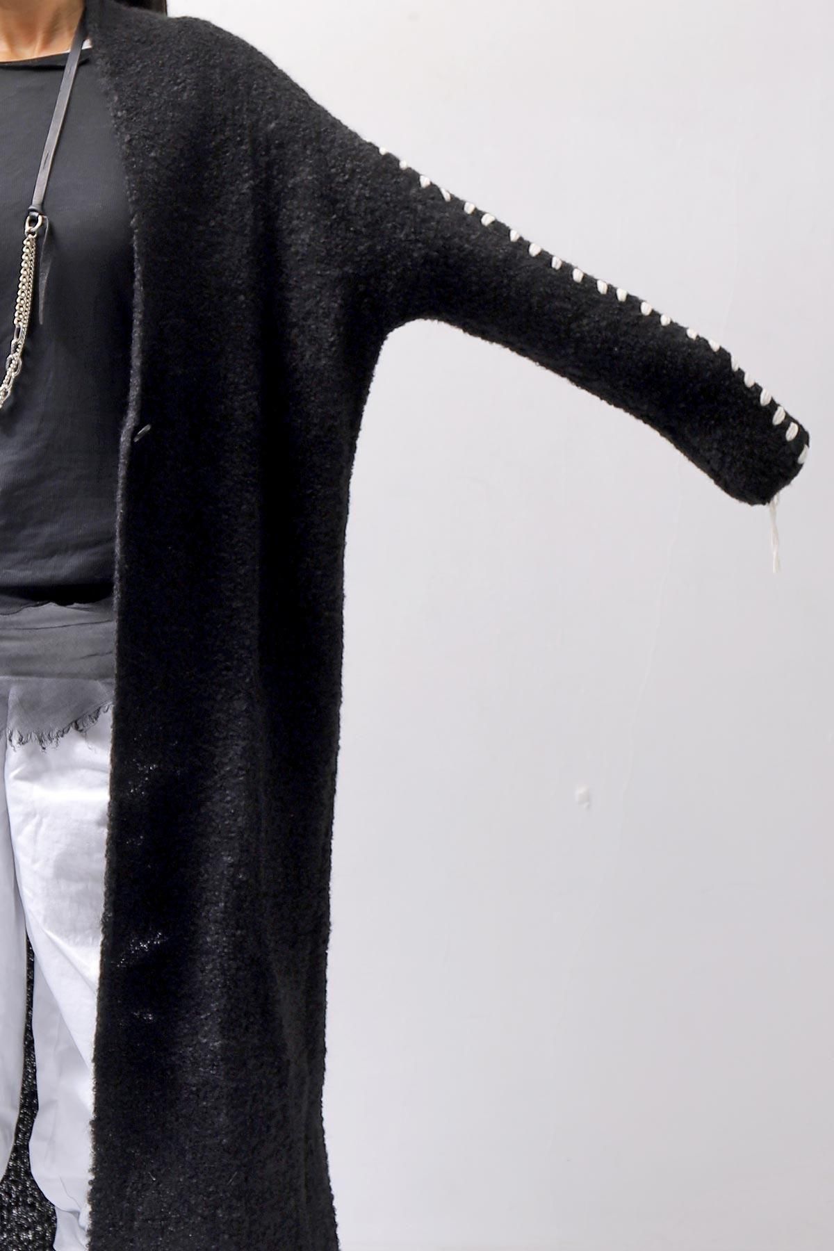 コートのインナーとしても使えるこのロングカーディガンは、ベーシックでありながらシルエットにこだわり、シンプルな中にもアクセントスティッチがプラスされた使えるイチマイです!