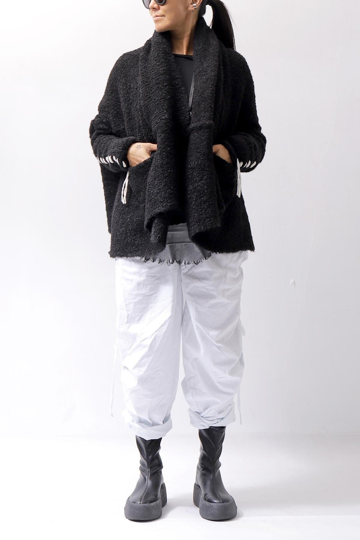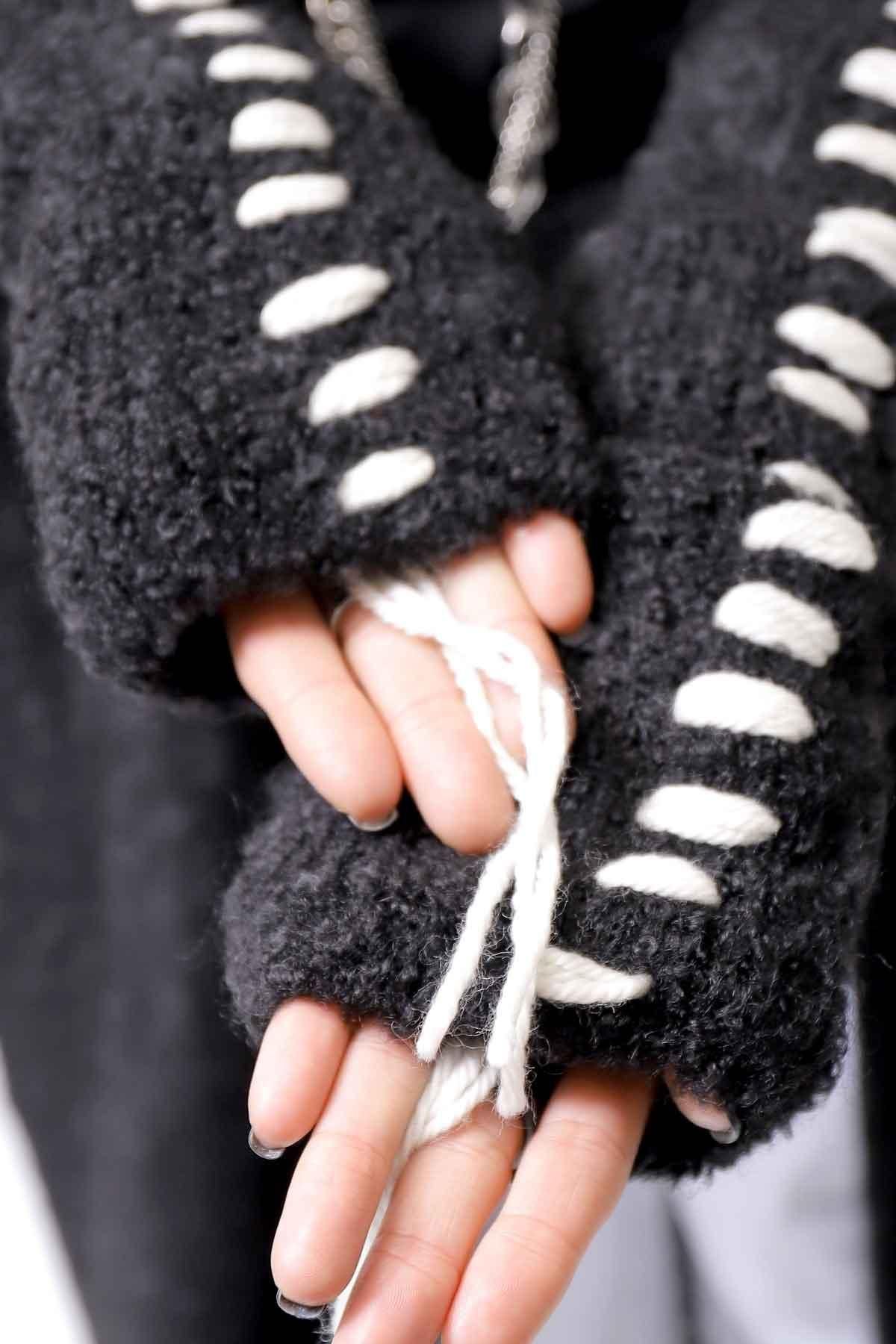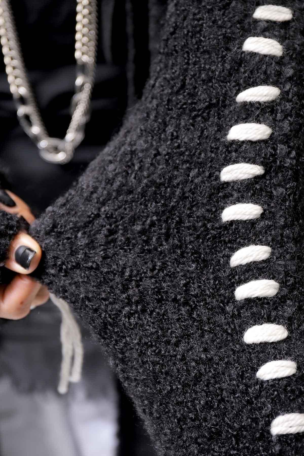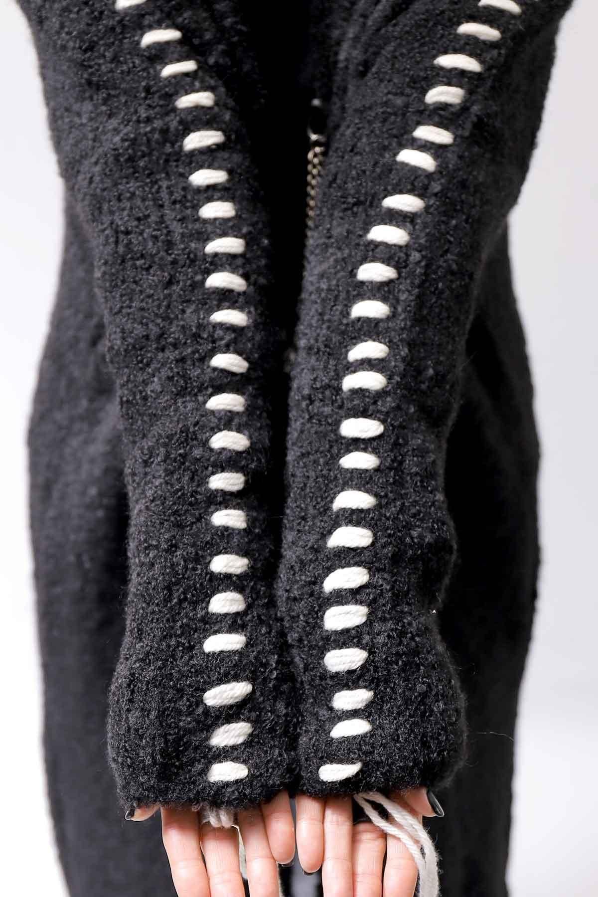 背中から上下に、そしてアーム袖口に向かって別の毛糸を使い、thomkromのアイコンでもあるスティッチをプラスして、アクセントに!
