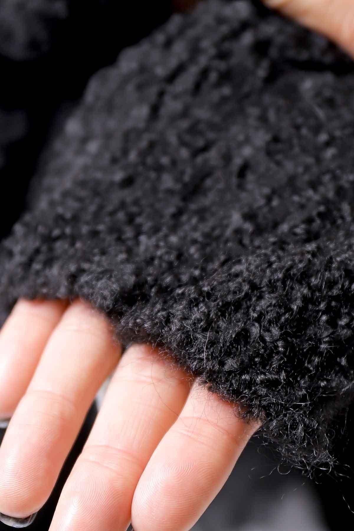 アルパカベースでフワッと軽くて柔らかい肌触りのこのニット、今までのアルパカニットで一番ネックとなっていた毛の付着がかなりしにくくなったことが何よりも今回セレクトした決め手に!