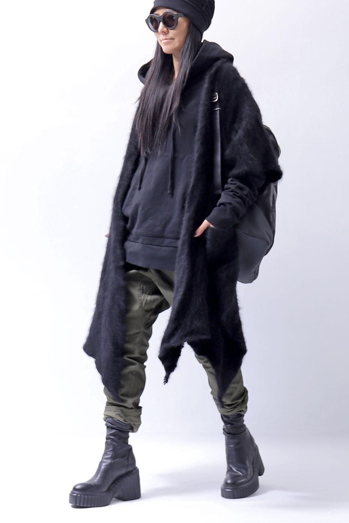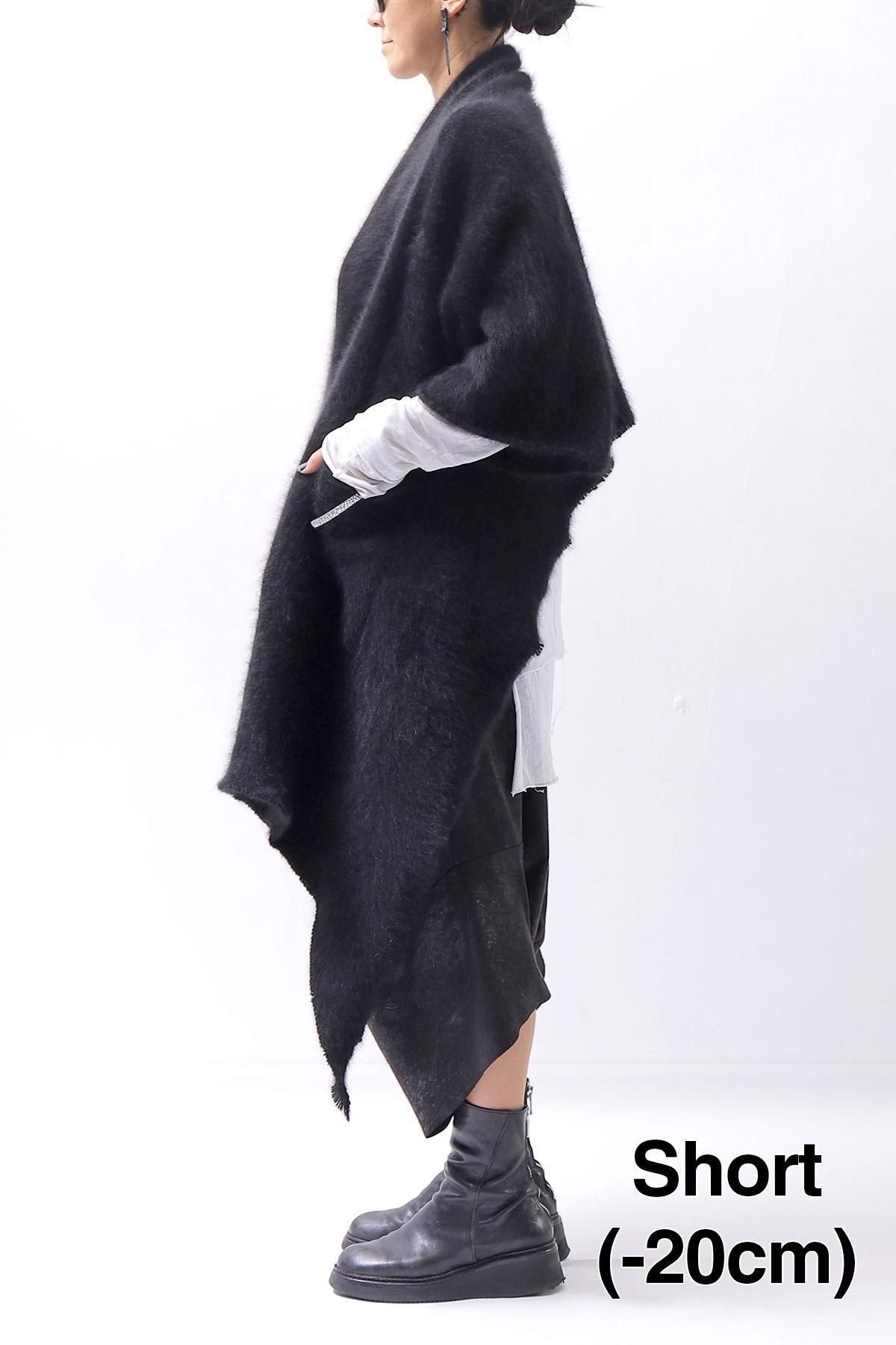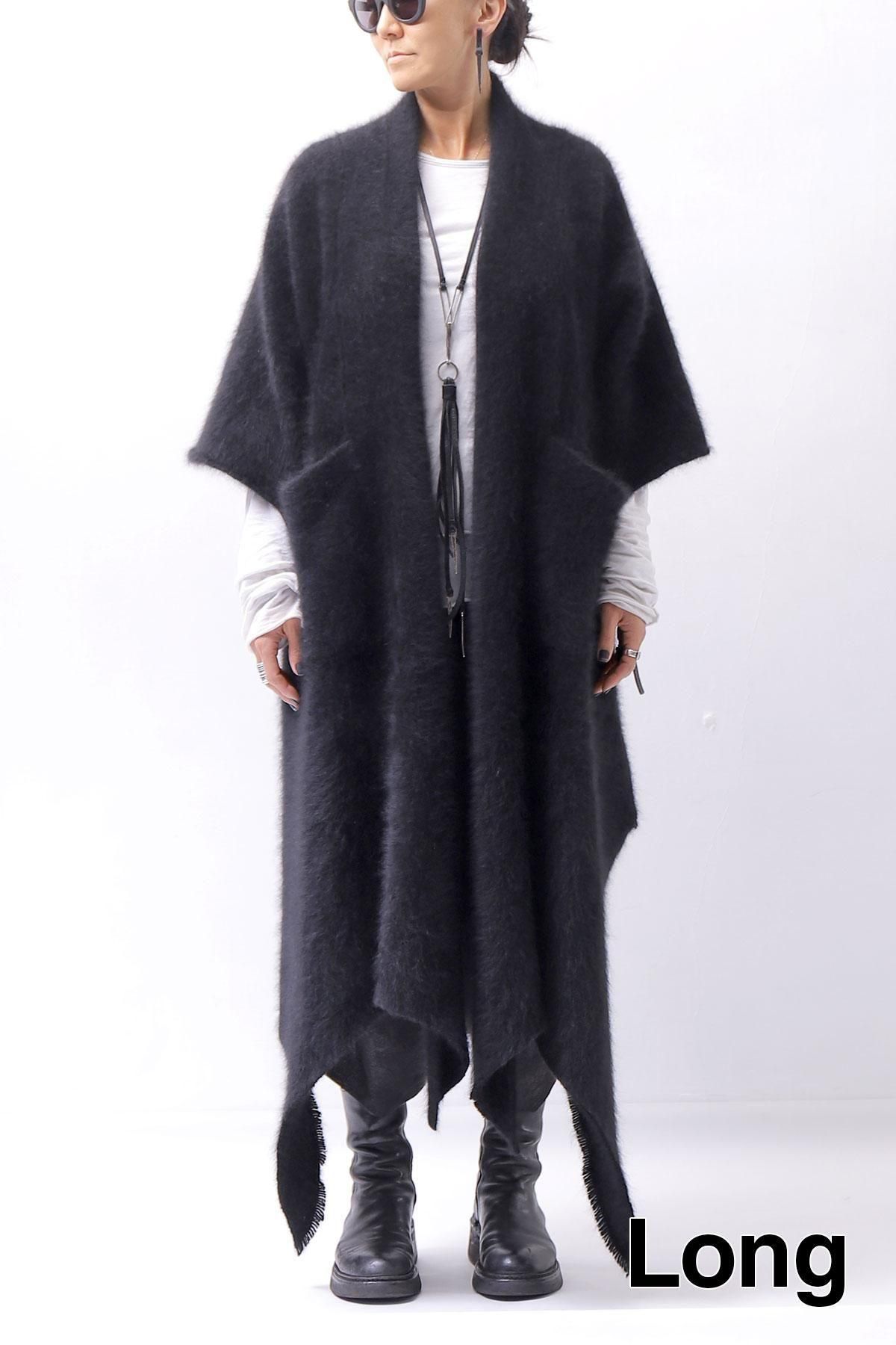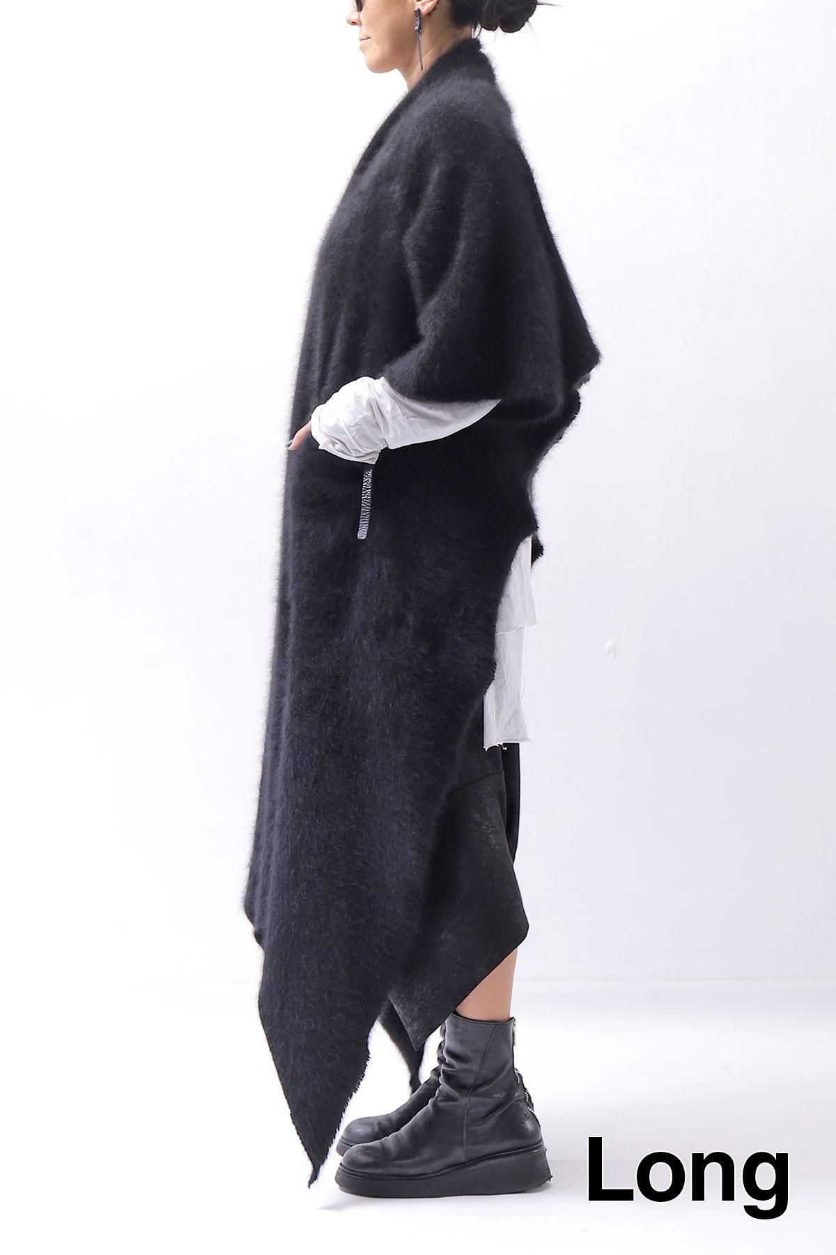 The long front design allows you to enjoy the layered look by hanging it as it is, or cross it over your shoulders to create a silhouette that looks like a stole wrapped around your body, adding even more warmth!