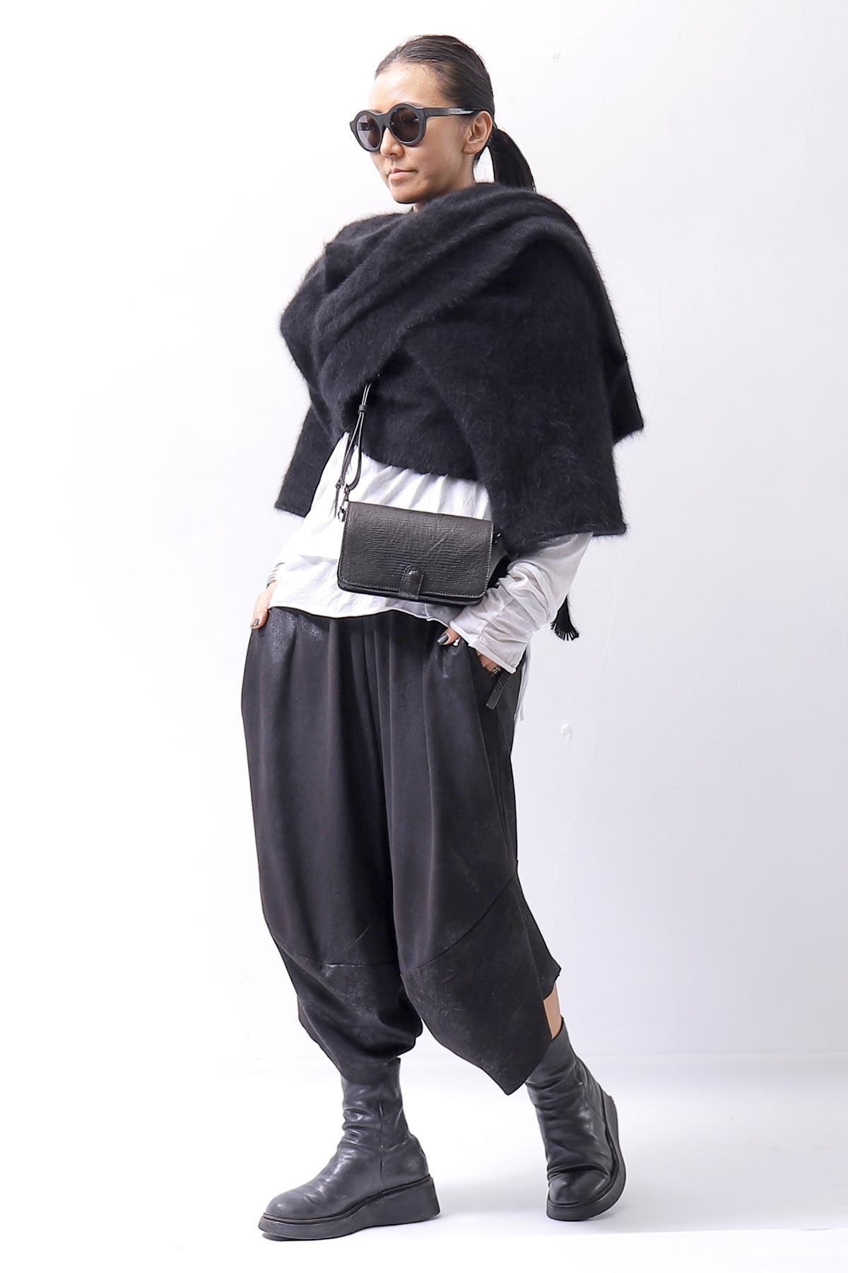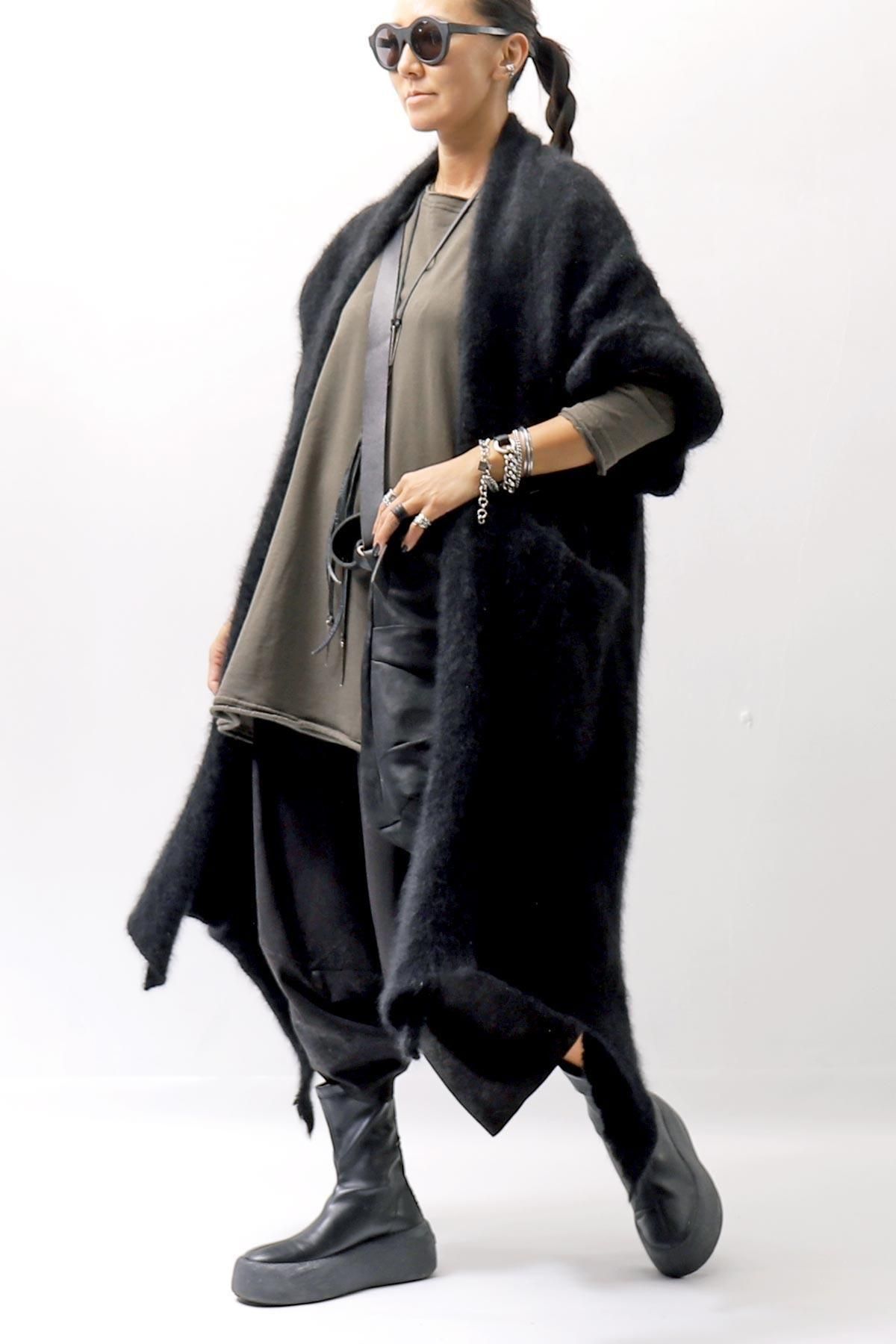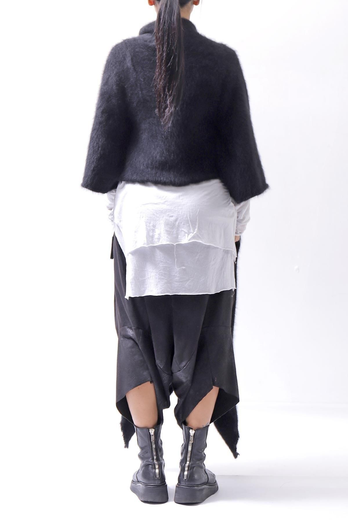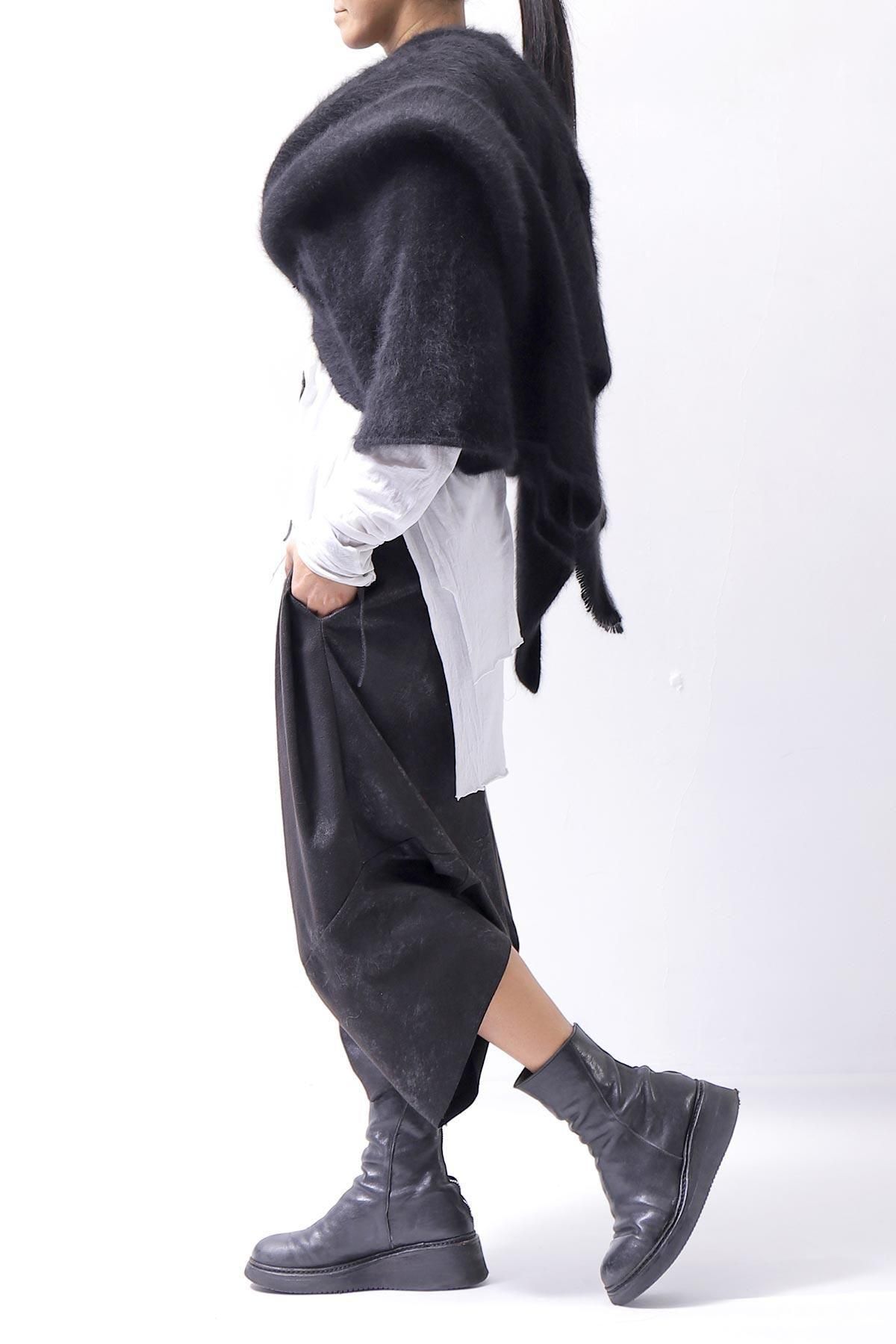 The long front design allows you to enjoy the layered look by hanging it as it is, or cross it over your shoulders to create a silhouette that looks like a stole wrapped around your body, adding even more warmth!