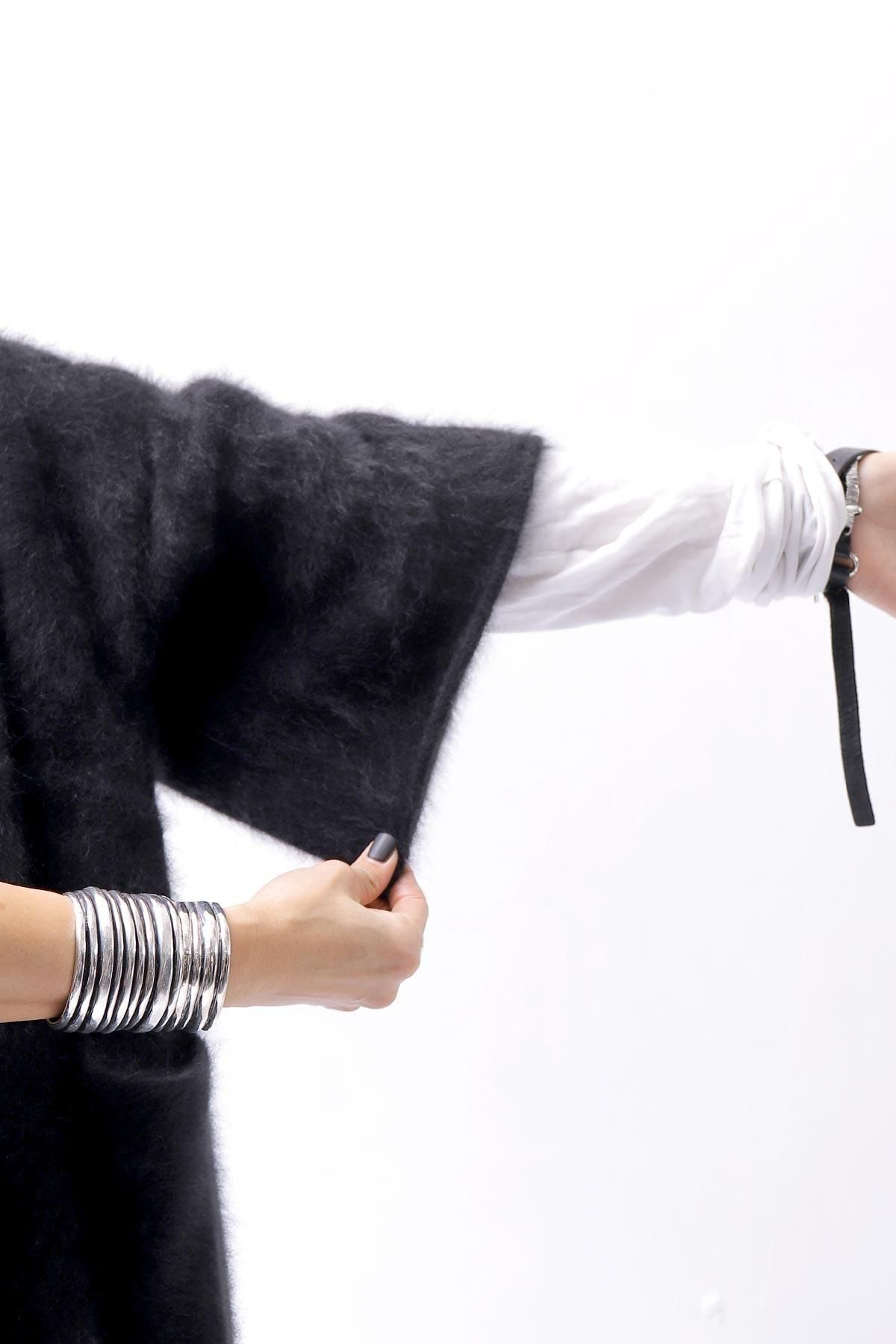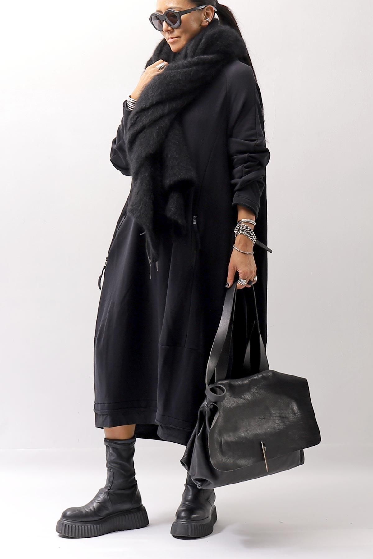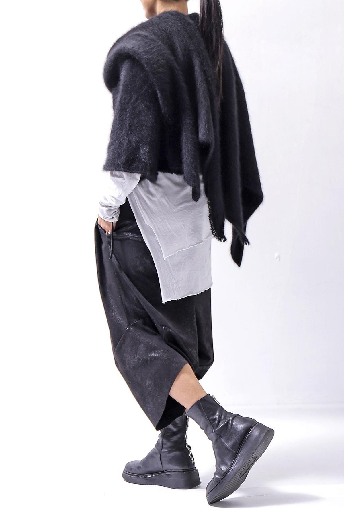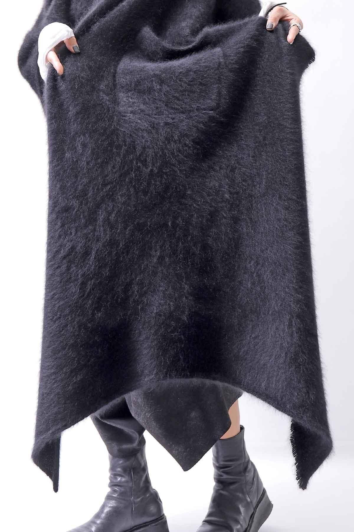 The long front design allows you to enjoy the layered look by hanging it as it is, or cross it over your shoulders to create a silhouette that looks like a stole wrapped around your body, adding even more warmth!