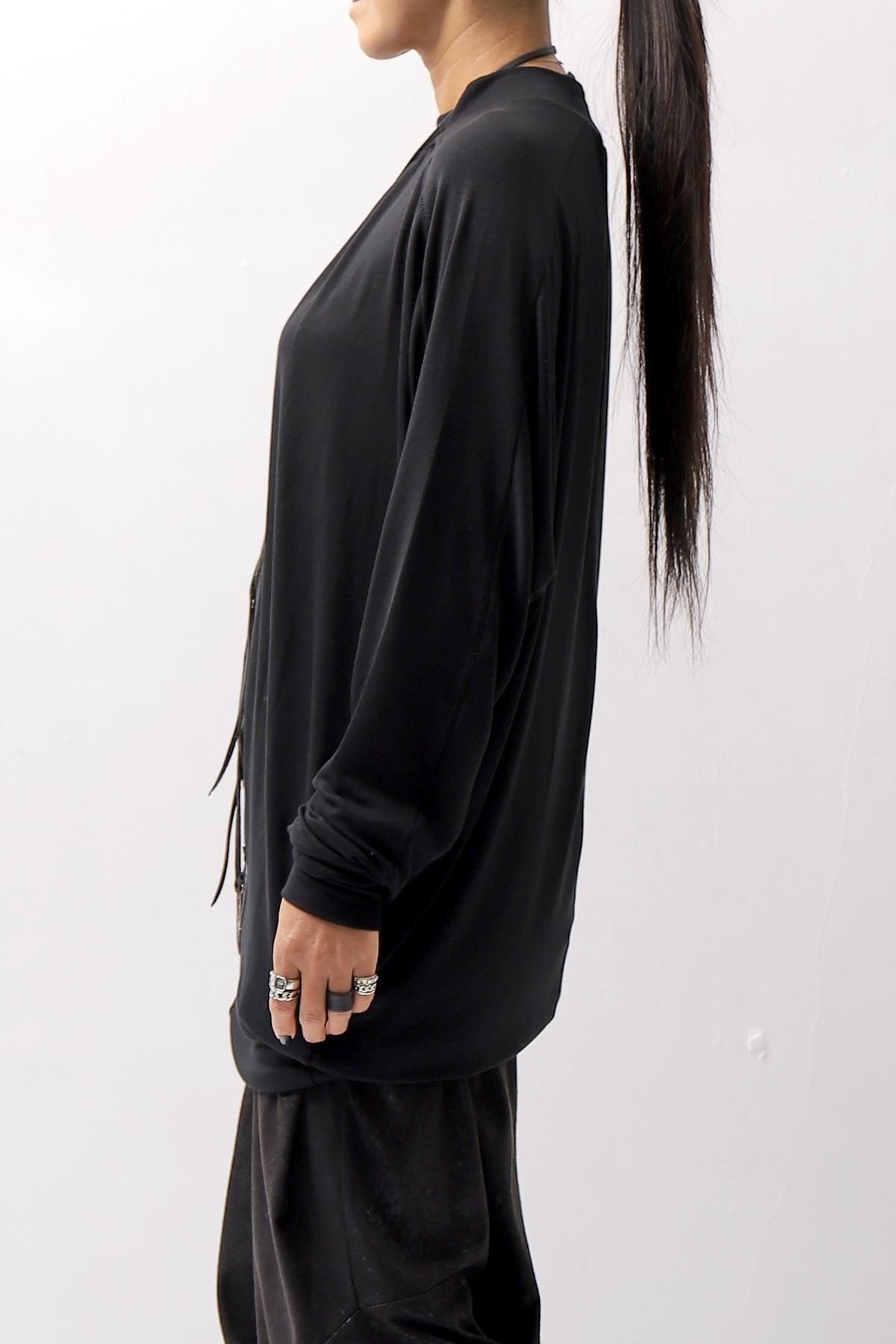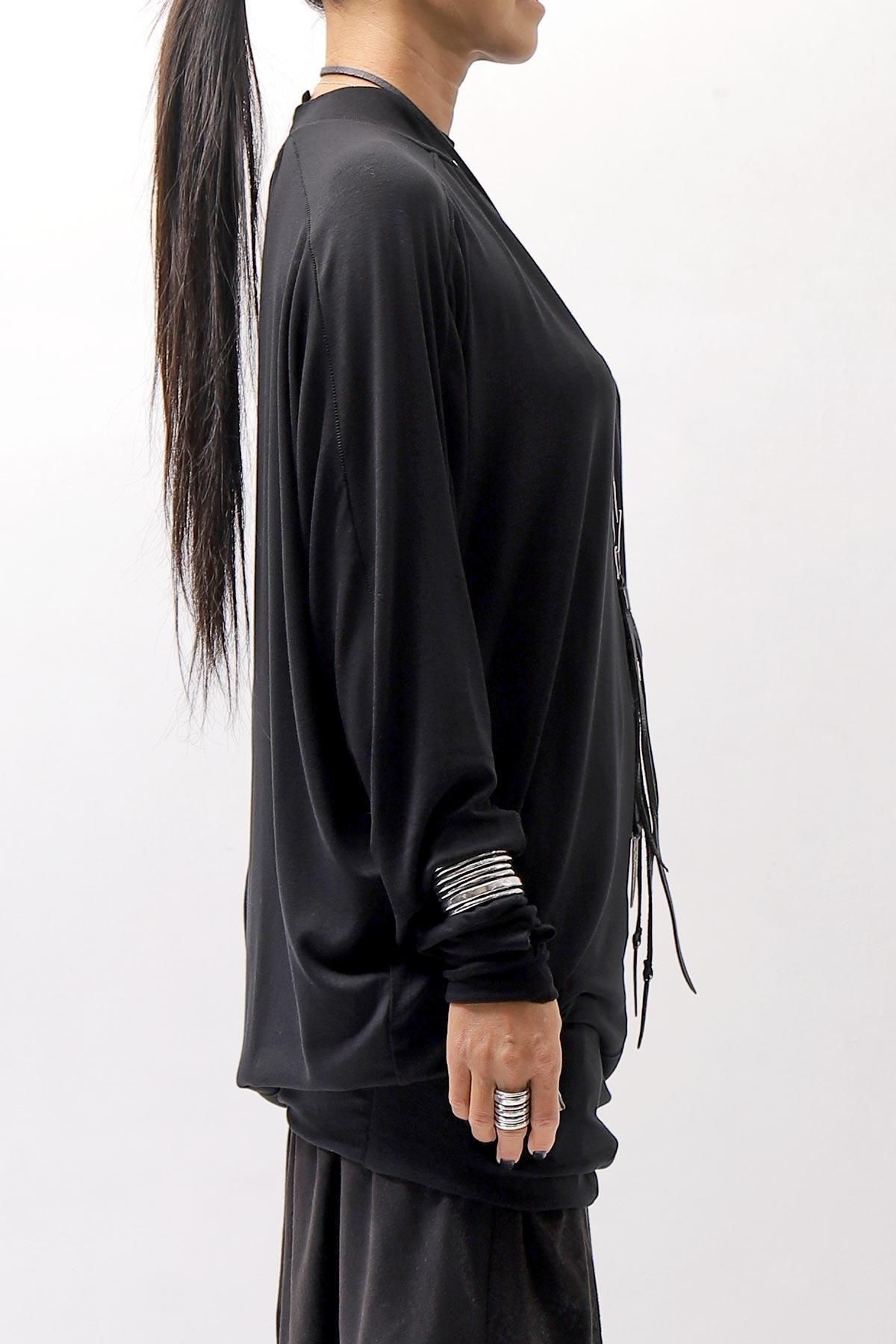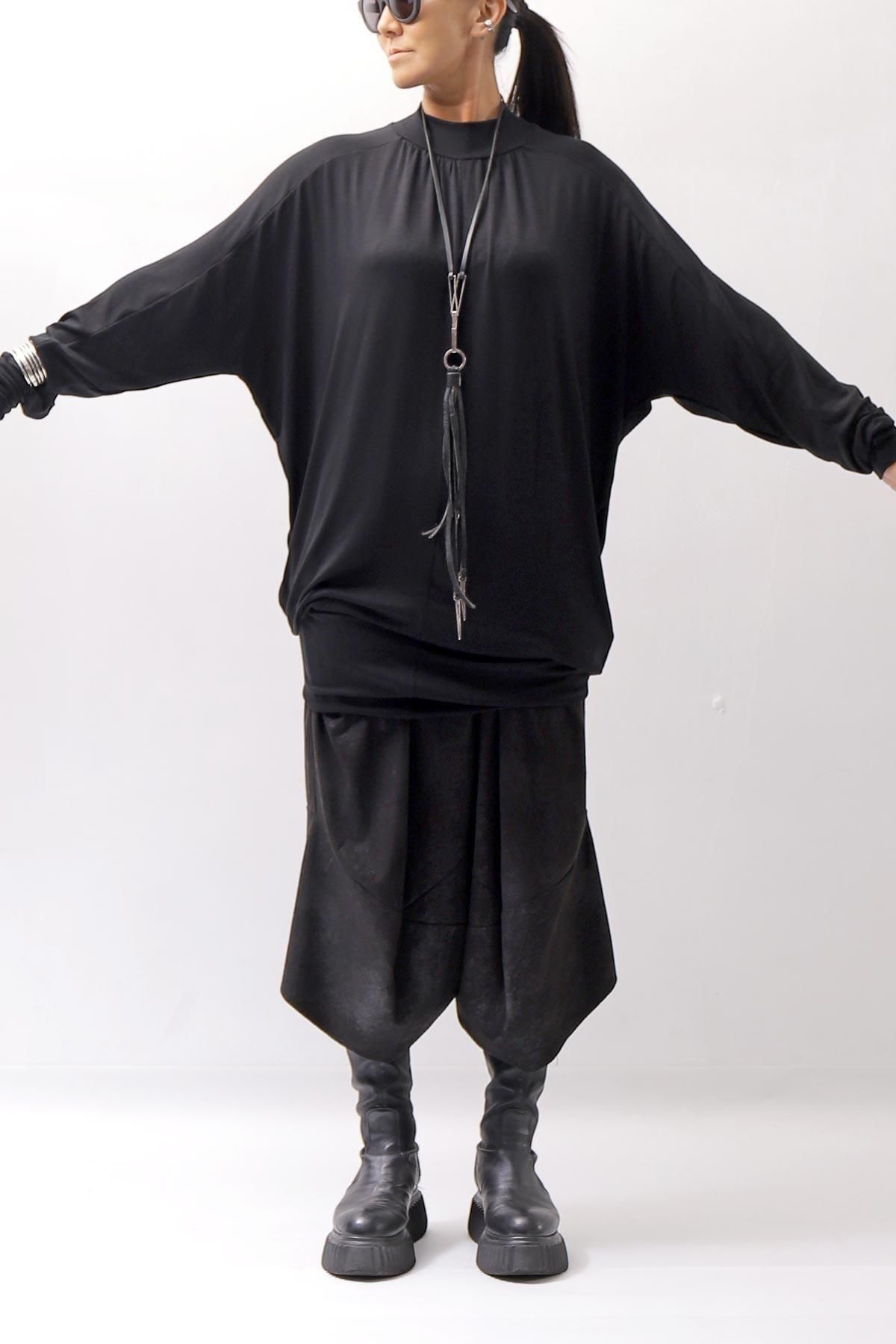 The overall silhouette is a cocoon type, so you can adjust the length of a top by making use of the narrow hem width.