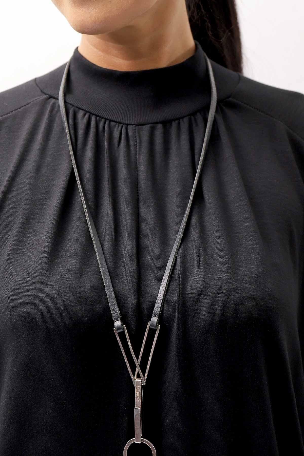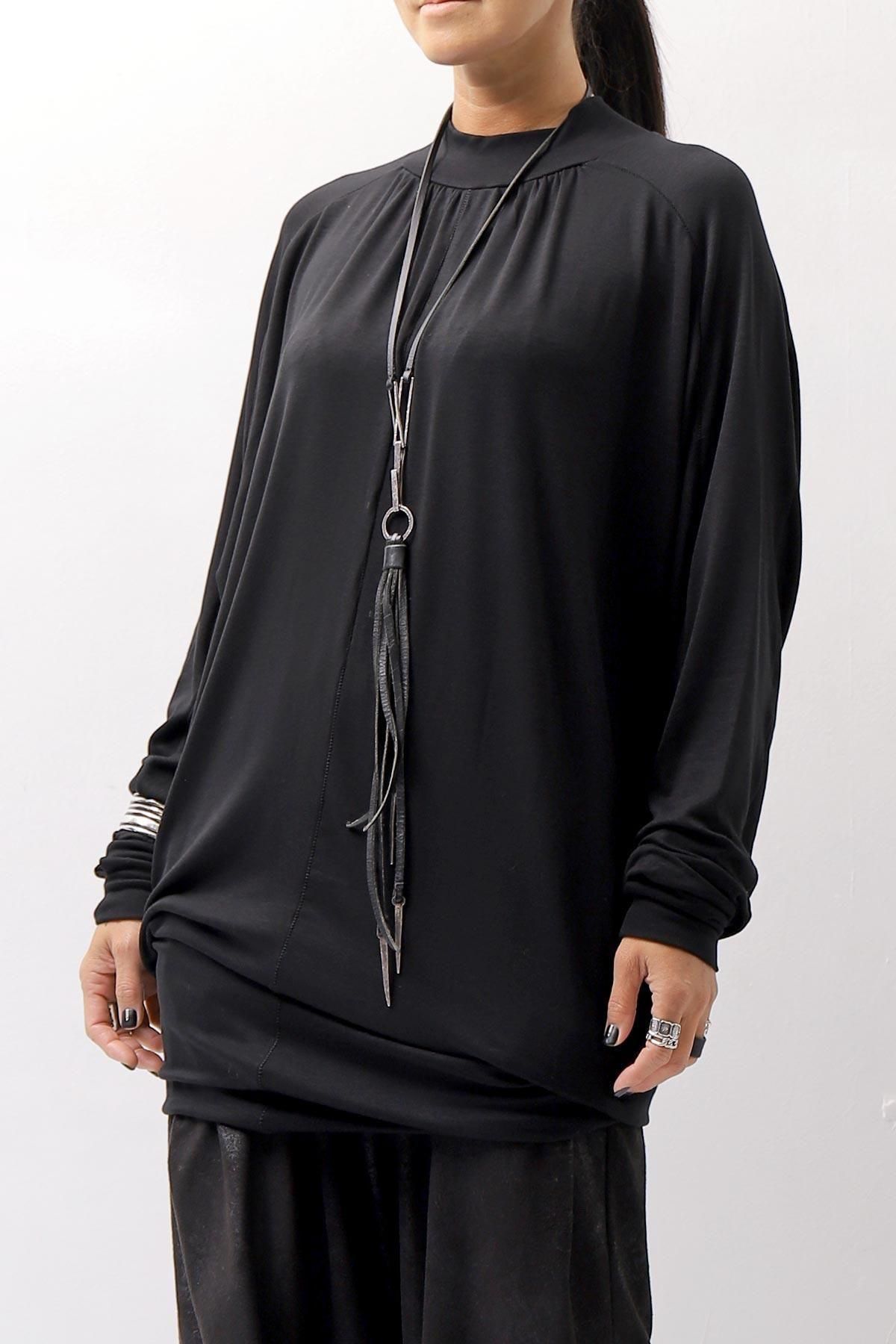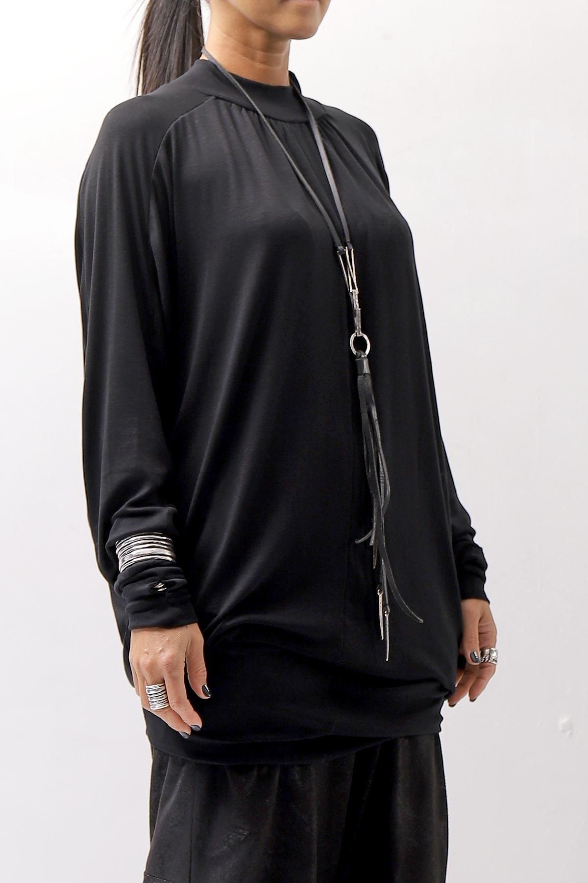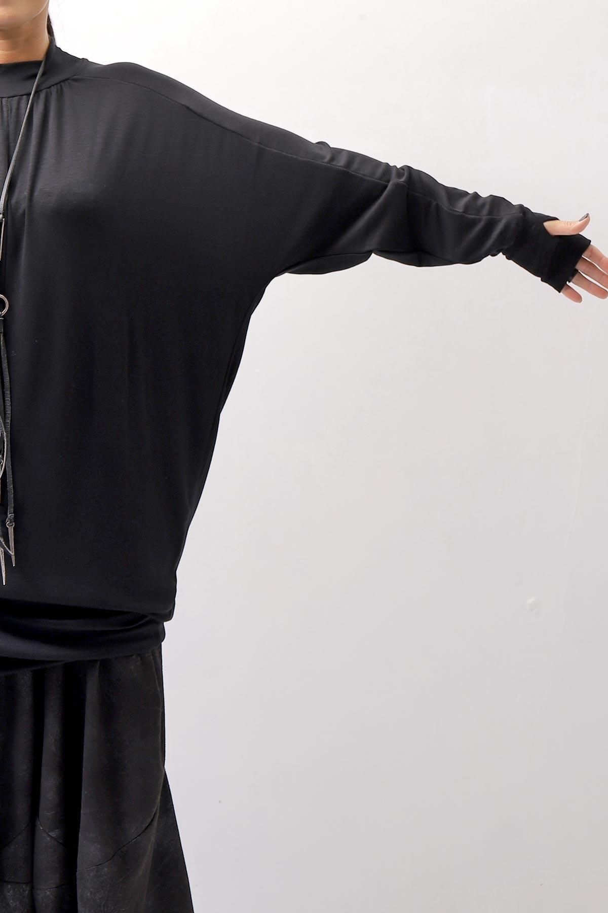 • STAND NECK STRETCH TOPS-DRESS WD26_BLACK