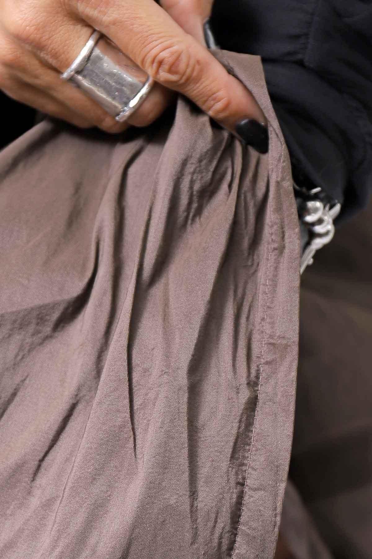 フワっとハリ感があるこの素材はポリエステルで耐久性も強くシワになりにくいことから、デイリーにもちょっとしたお出かけにも気兼ねなく履けるのが◎