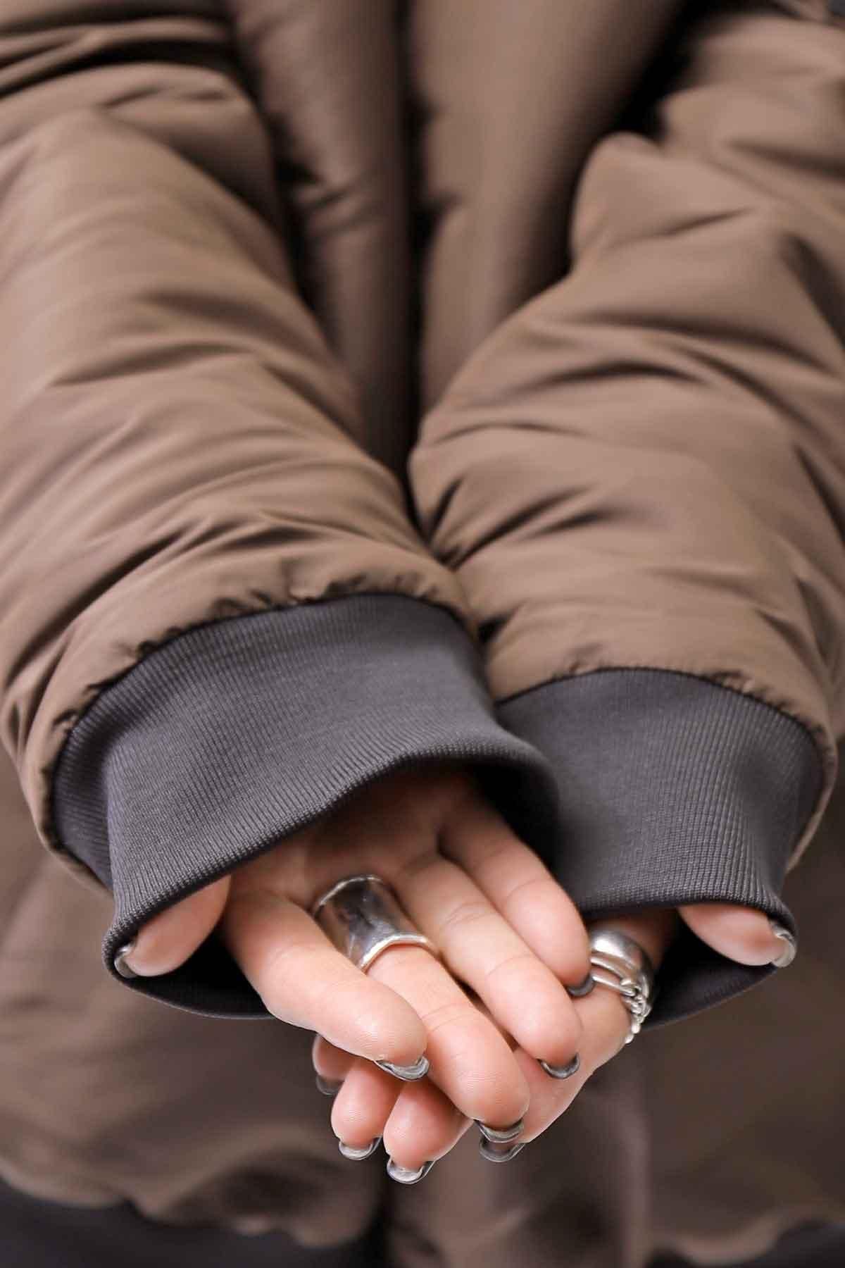 真冬にはジャケットの上からライトアウターをプラスして、逆レイヤードも!