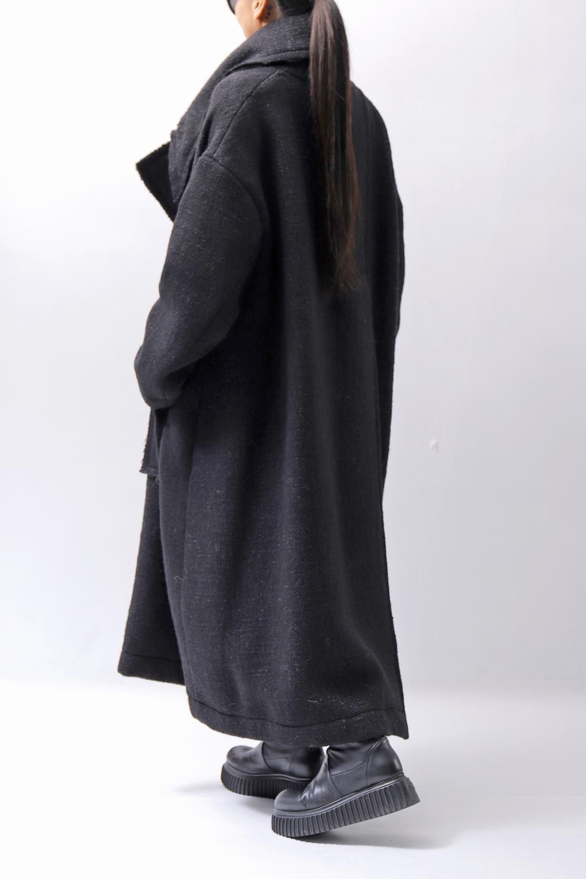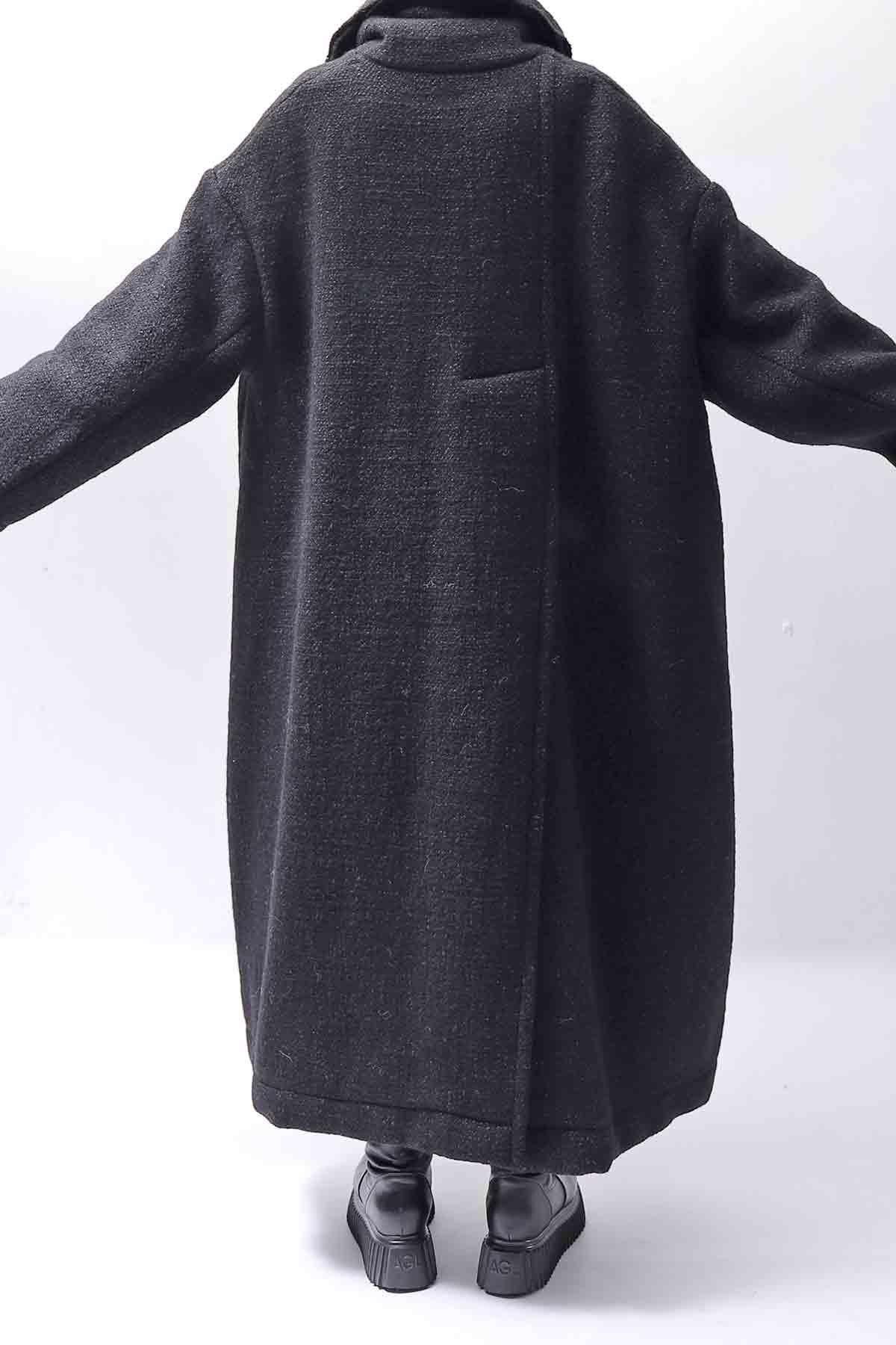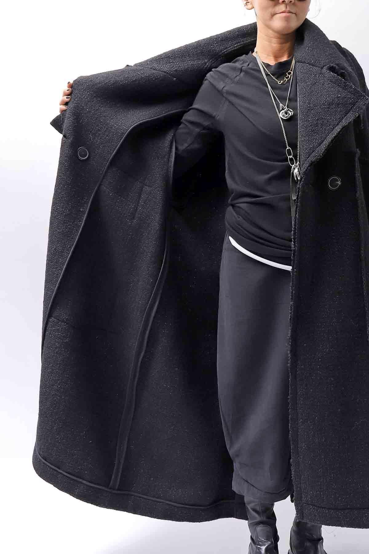肩からのオチ感と襟元のシルエットがキレイなロングコート。