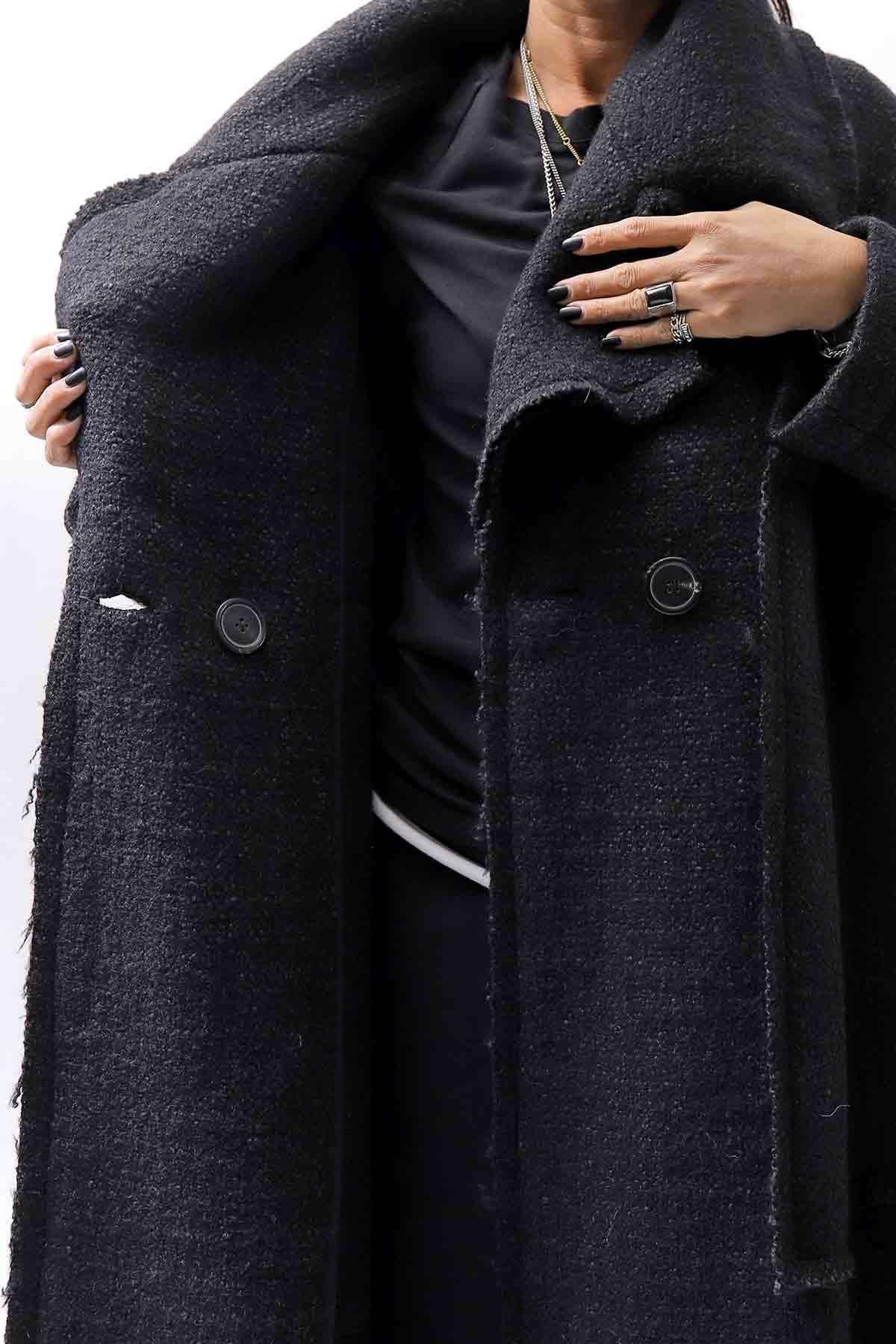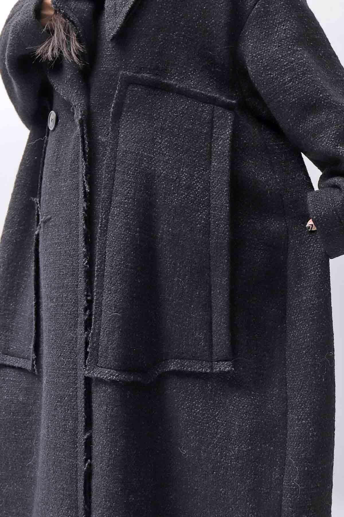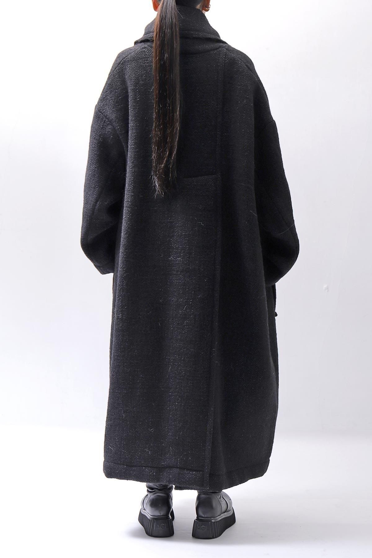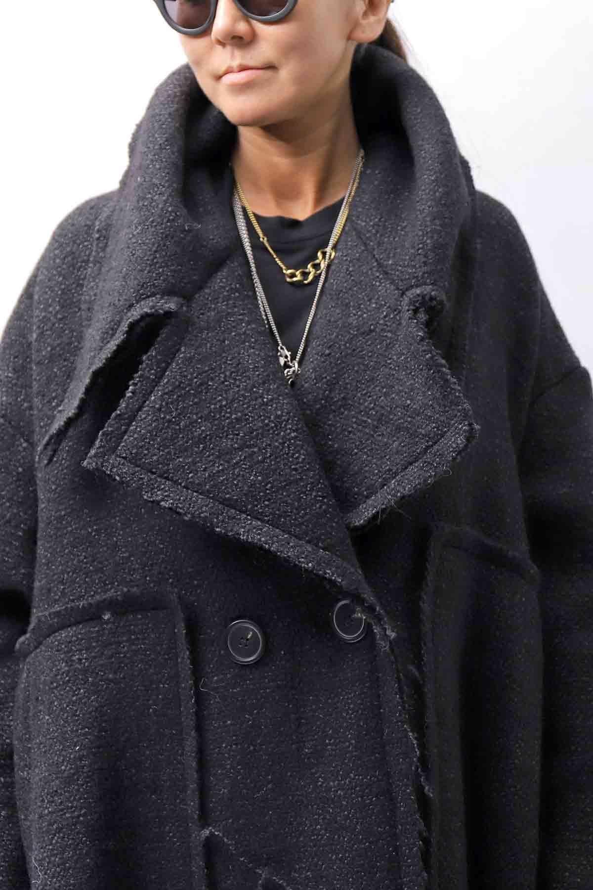 肩からのオチ感と襟元のシルエットがキレイなロングコート。