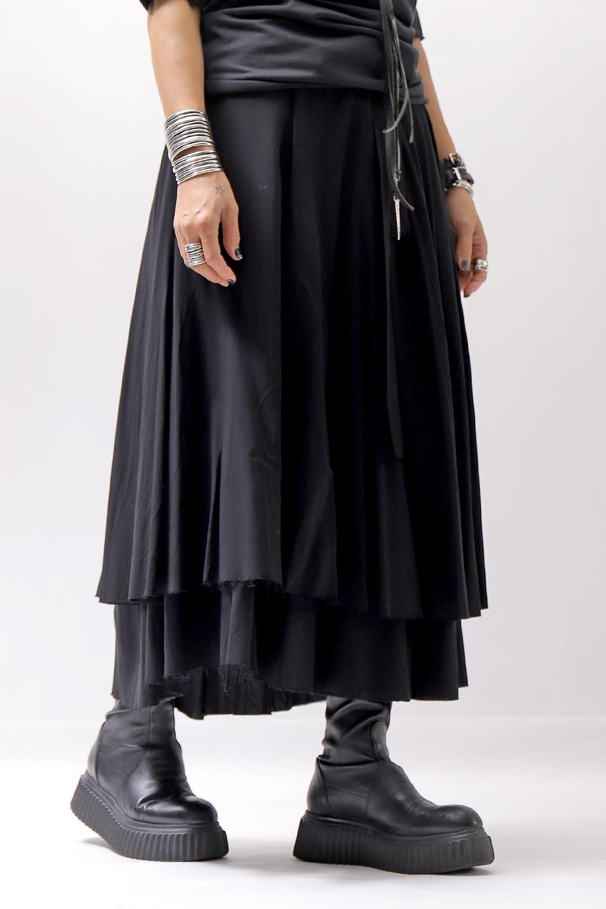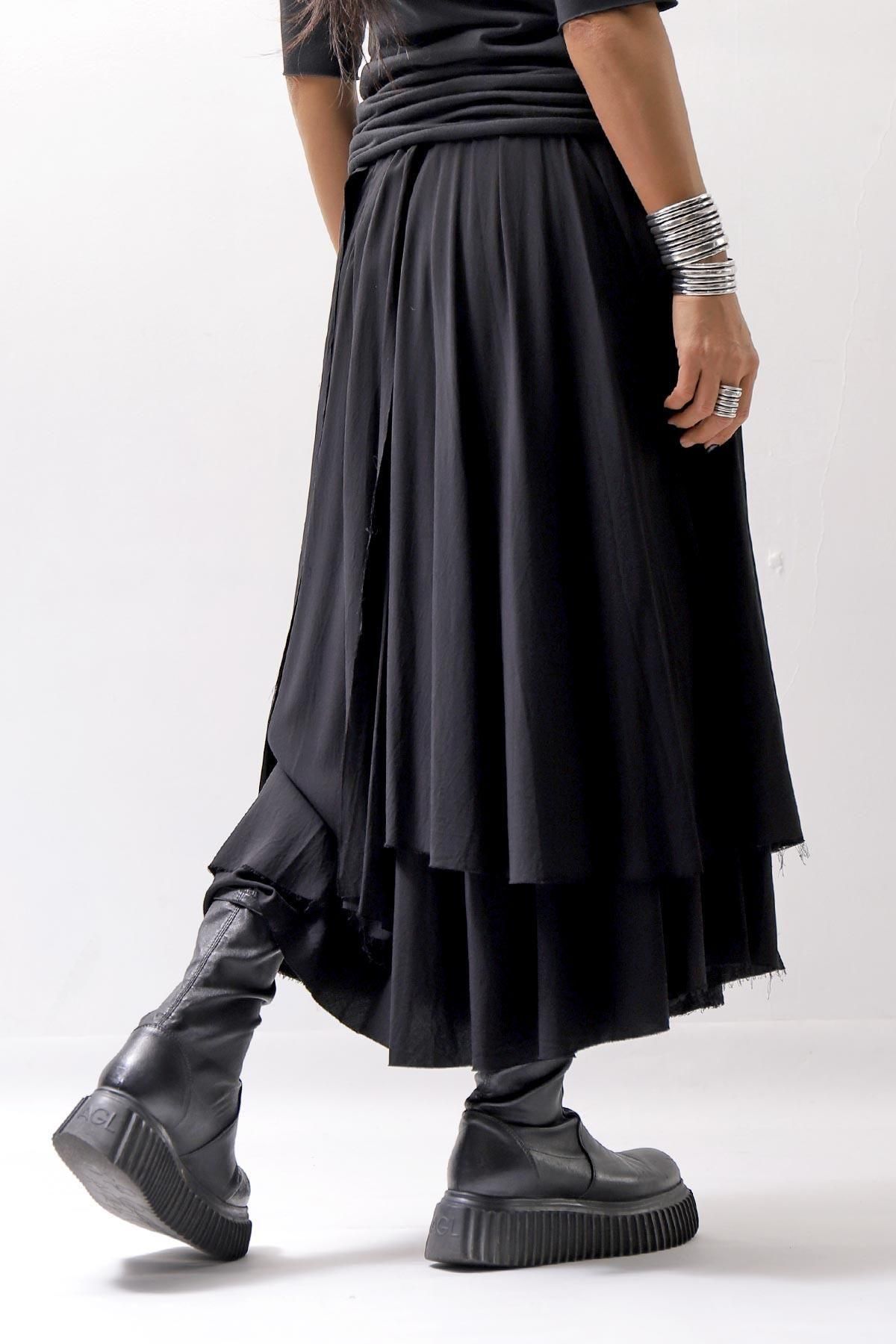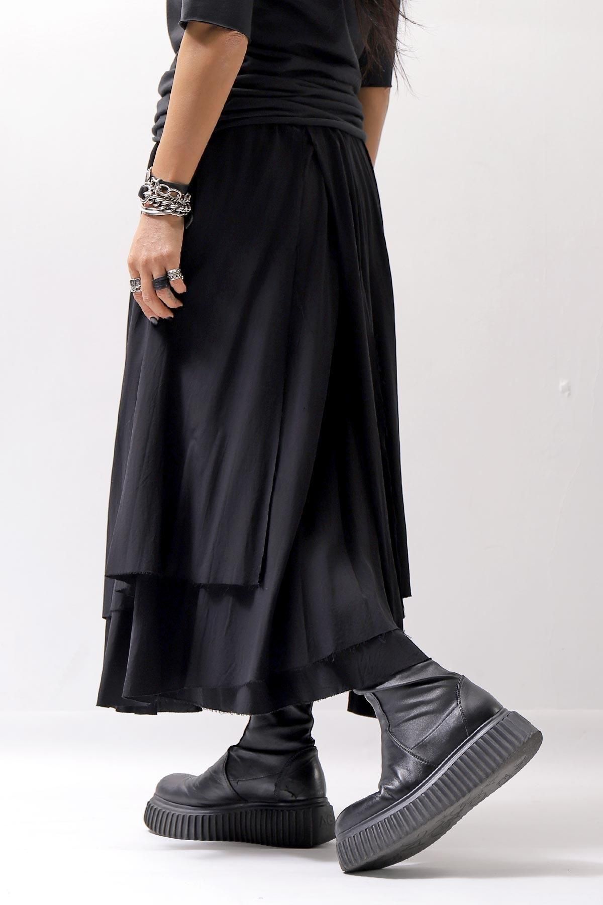 上品になりがちなヴィスコース素材も切りっぱなし加工で無造作感を出し、アシメトリ―に重ねて動きの出るスカートを得意とするstudio b3らしい仕上がりに!