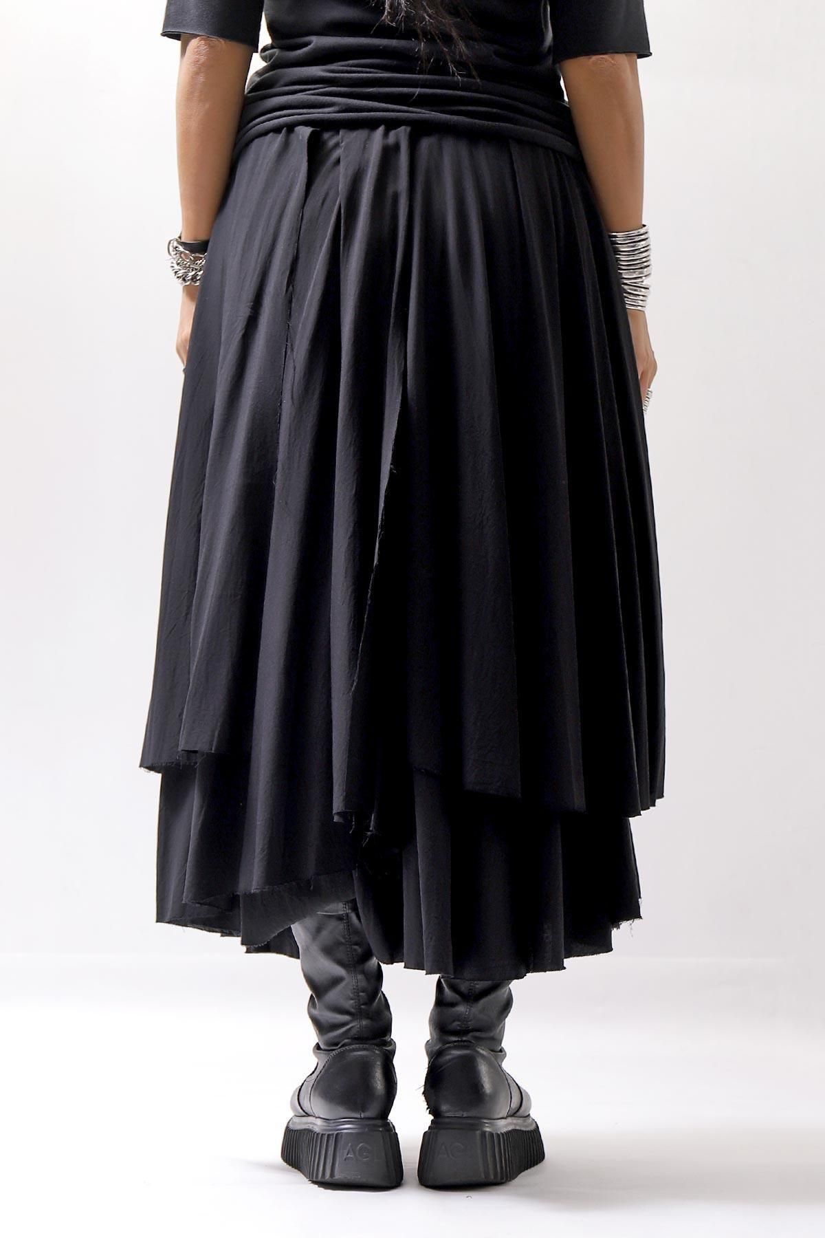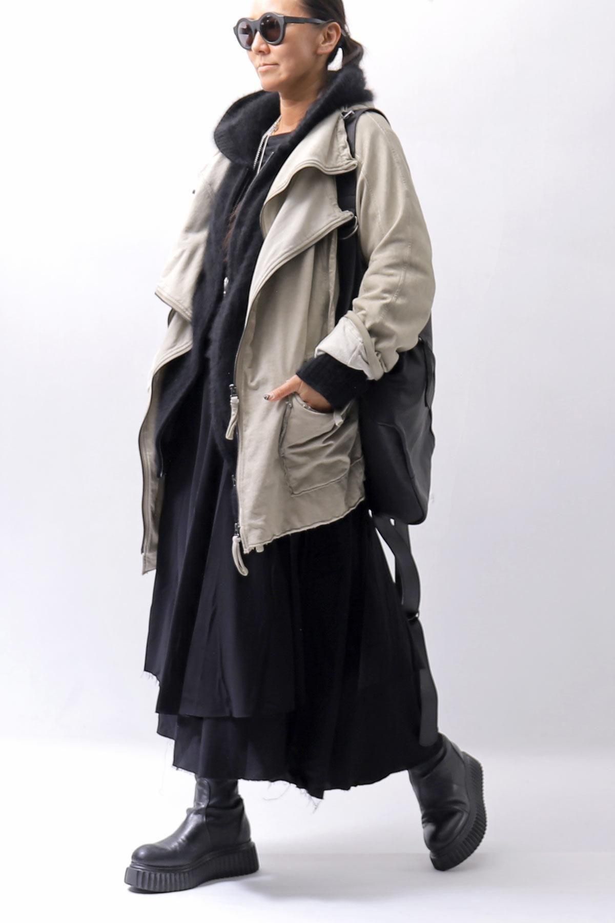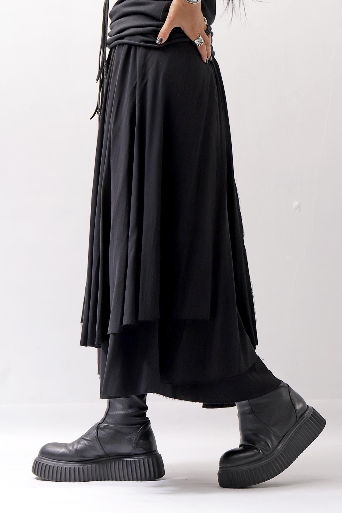 上品になりがちなヴィスコース素材も切りっぱなし加工で無造作感を出し、アシメトリ―に重ねて動きの出るスカートを得意とするstudio b3らしい仕上がりに!