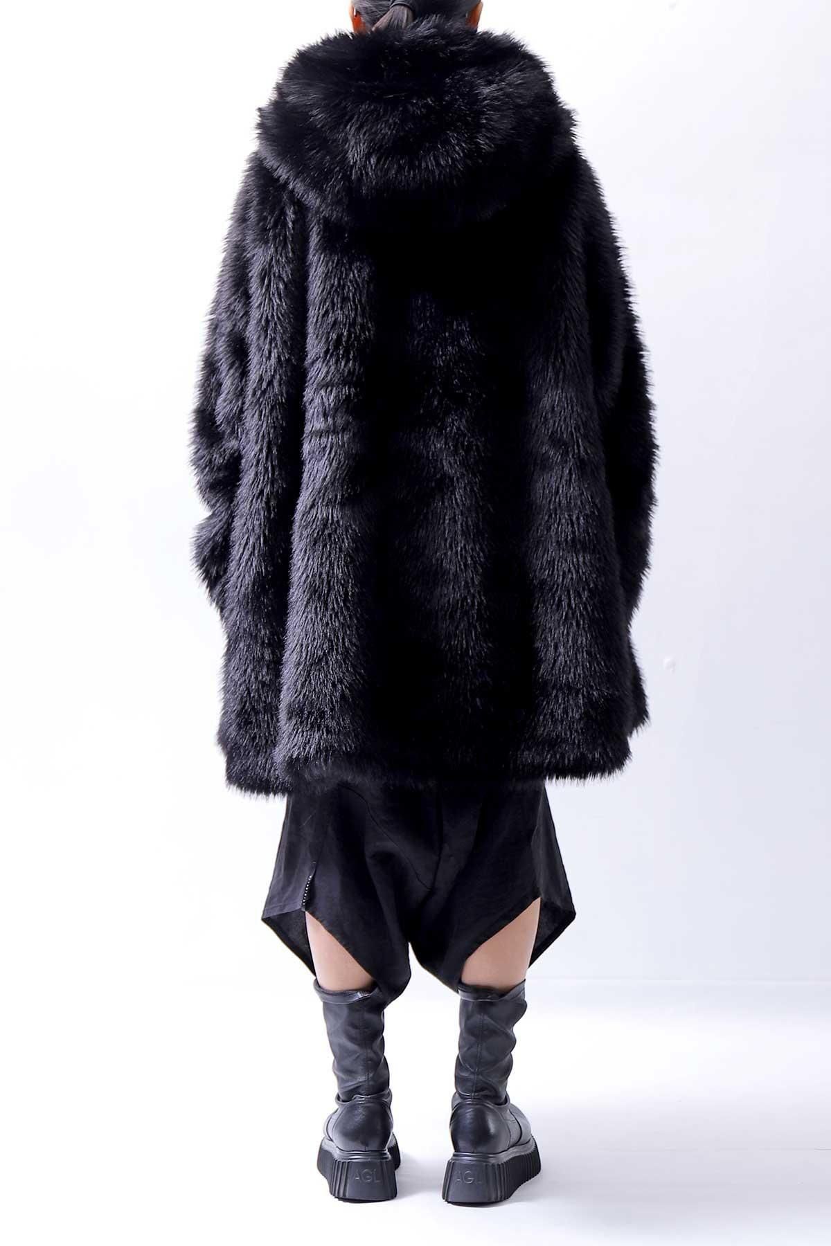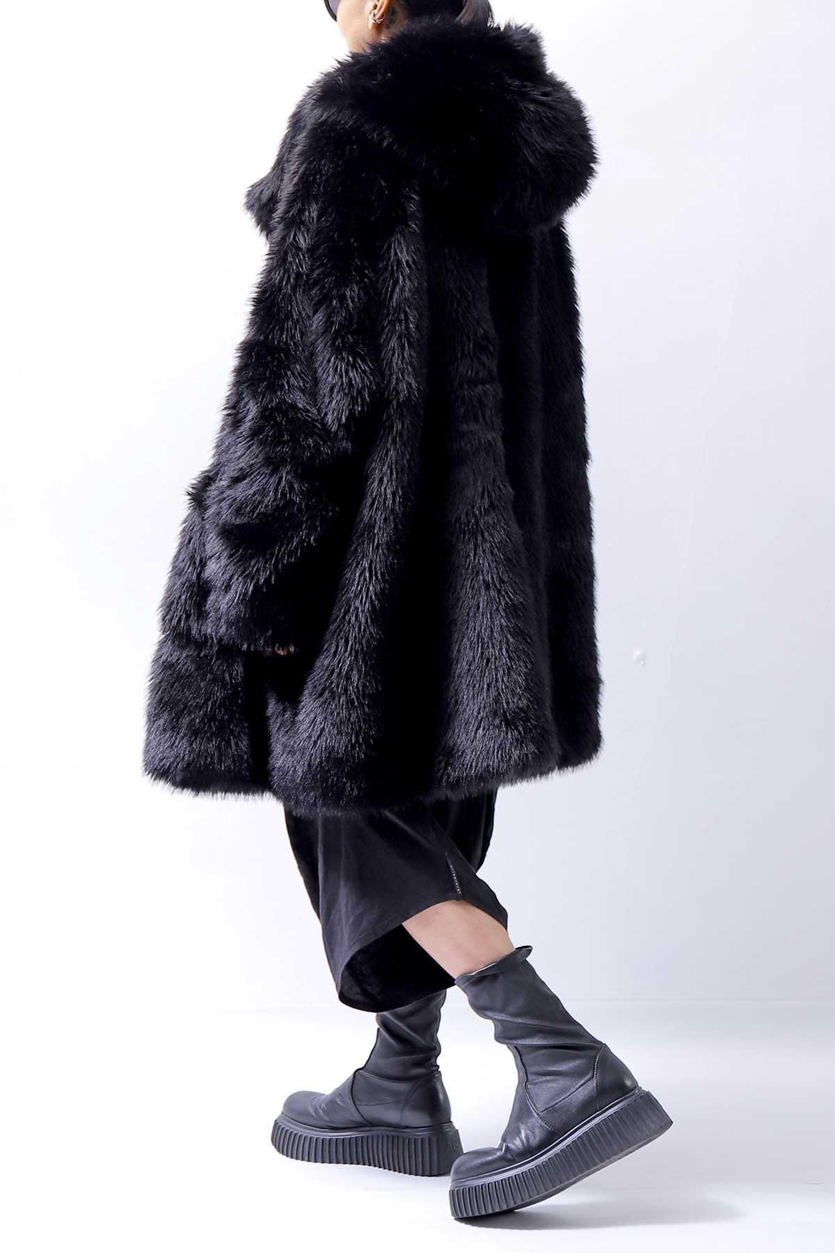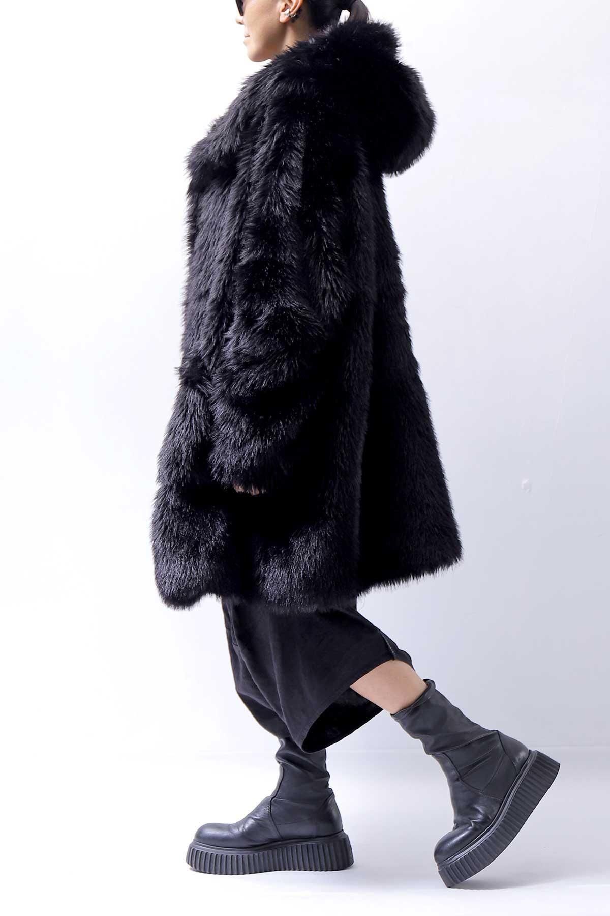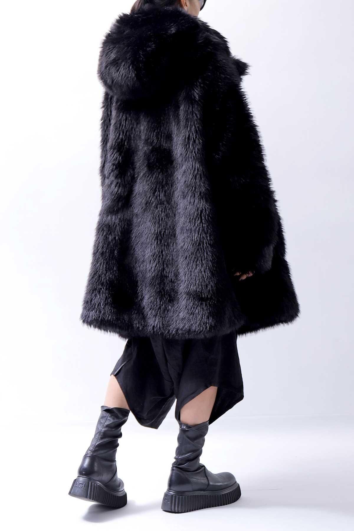 数年前までは考えられないほどのクオリティの良さを実感する、柔らかくしなやかなエコファーのフード付きコートが登場!
