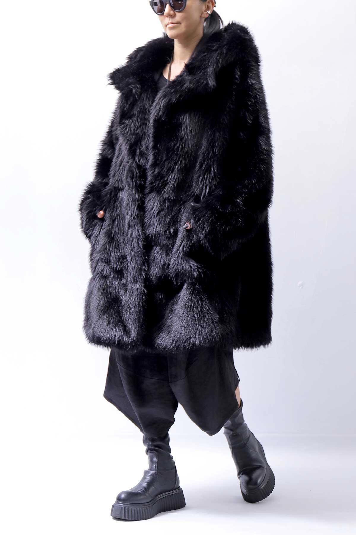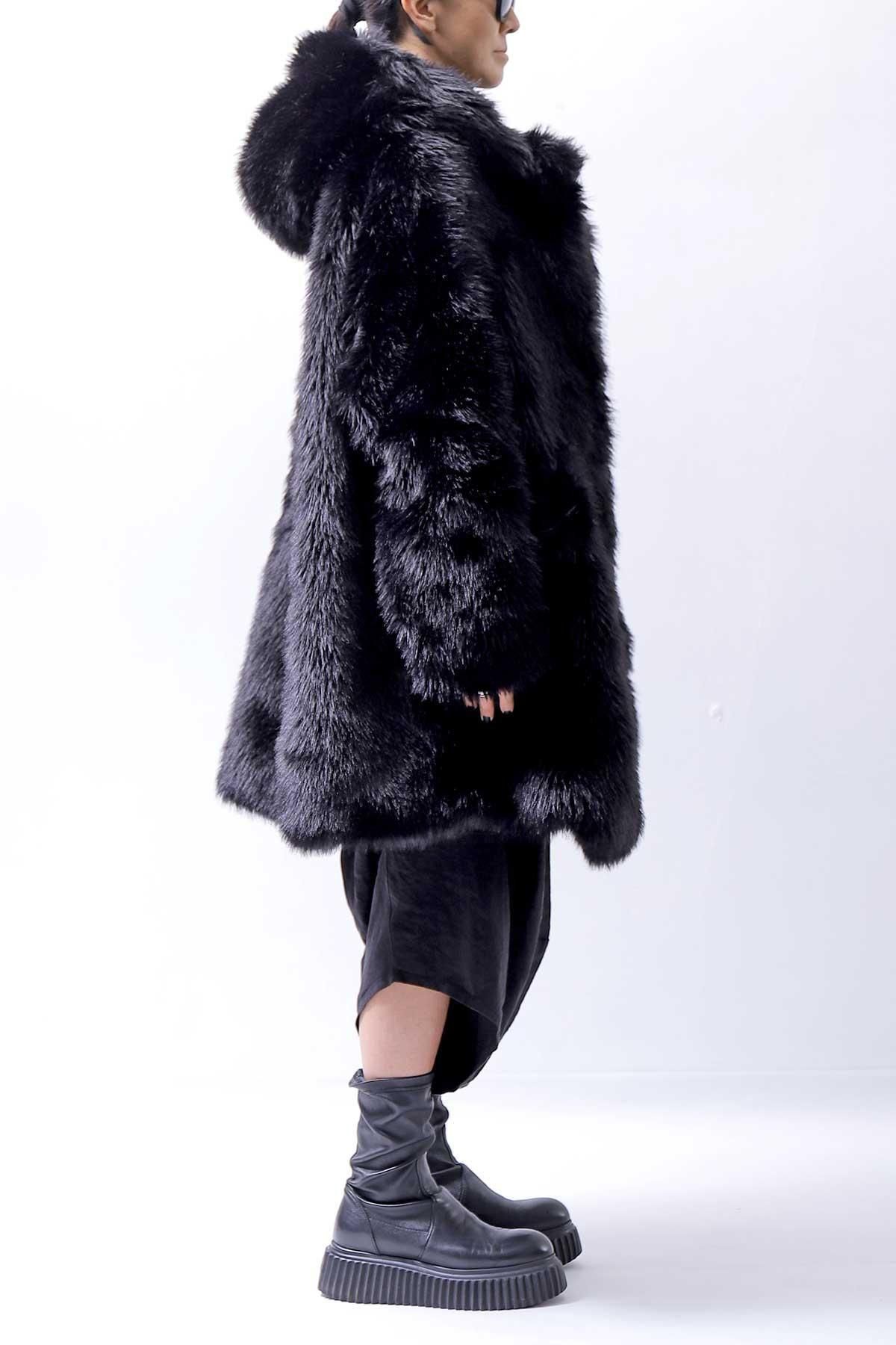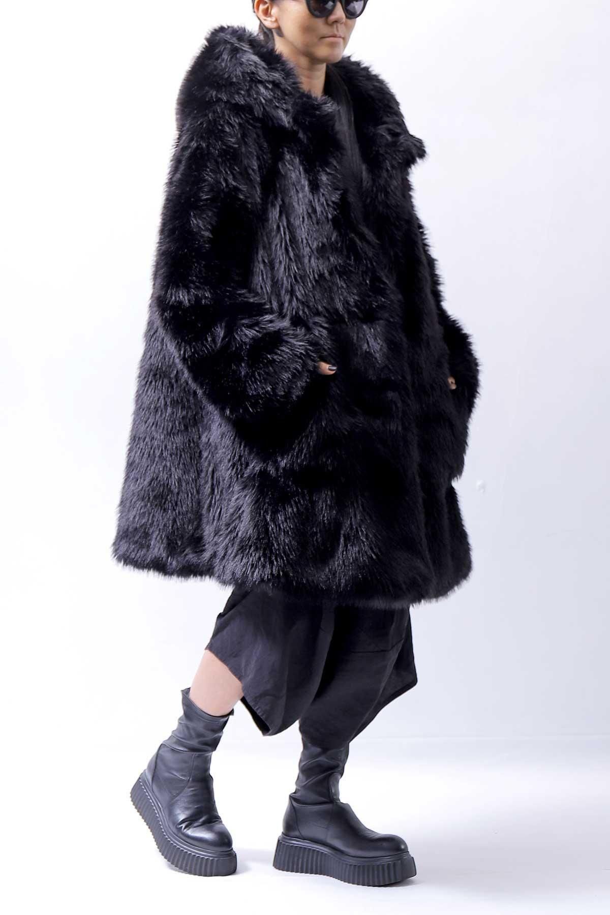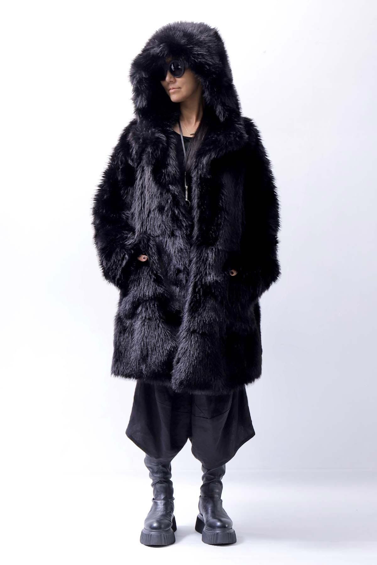 数年前までは考えられないほどのクオリティの良さを実感する、柔らかくしなやかなエコファーのフード付きコートが登場!