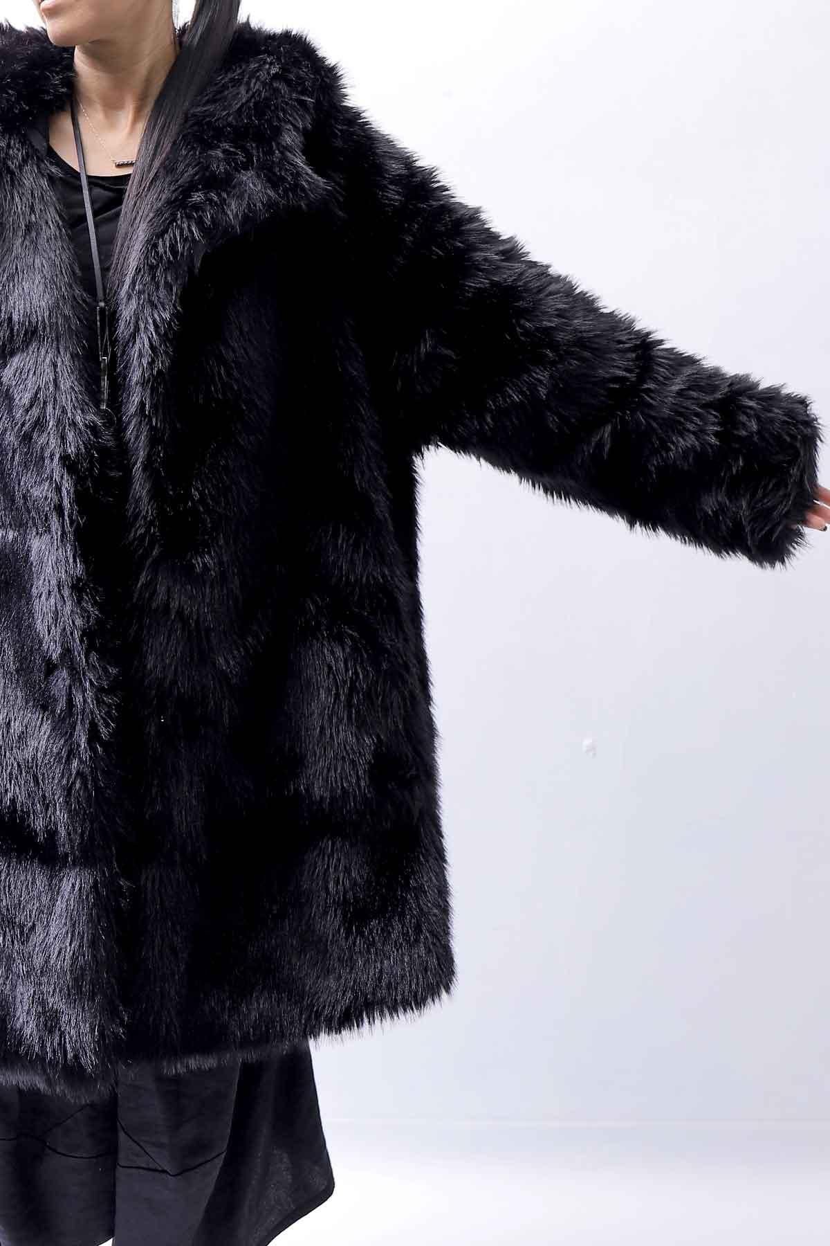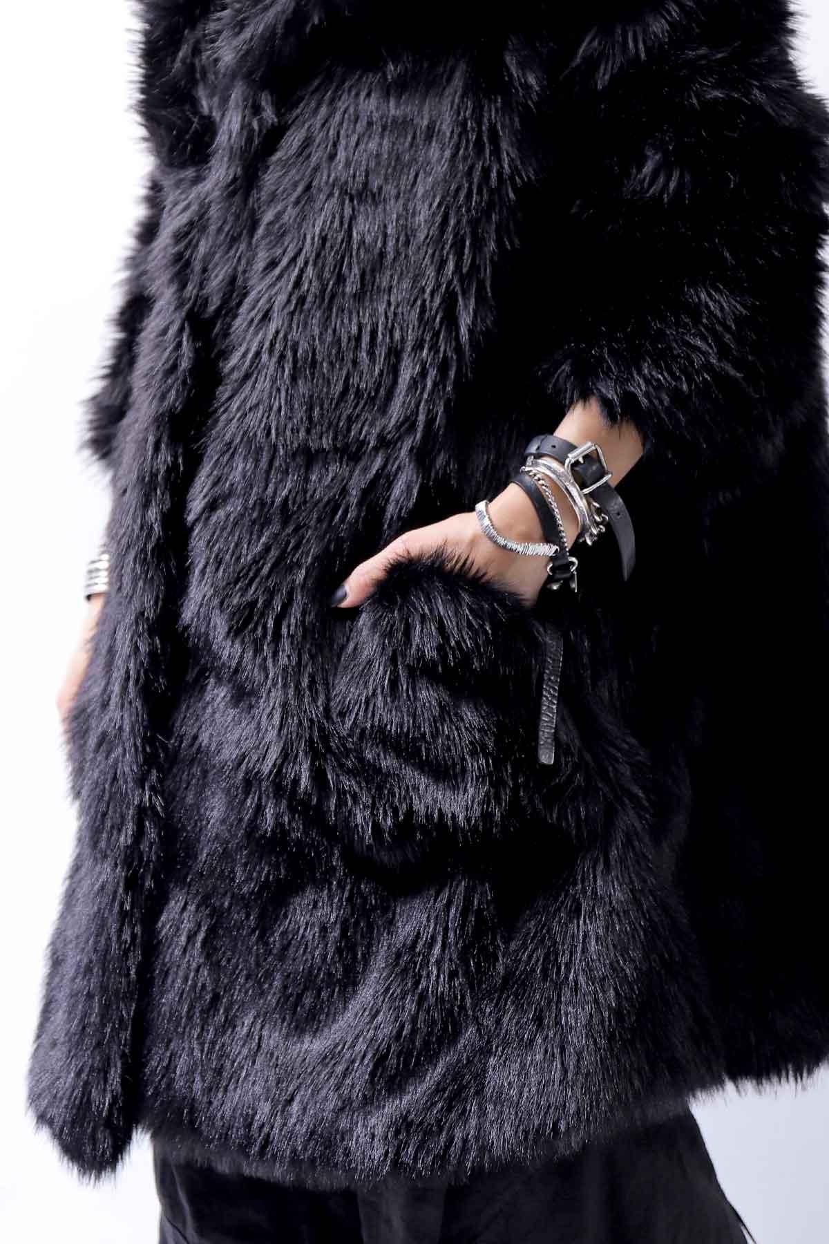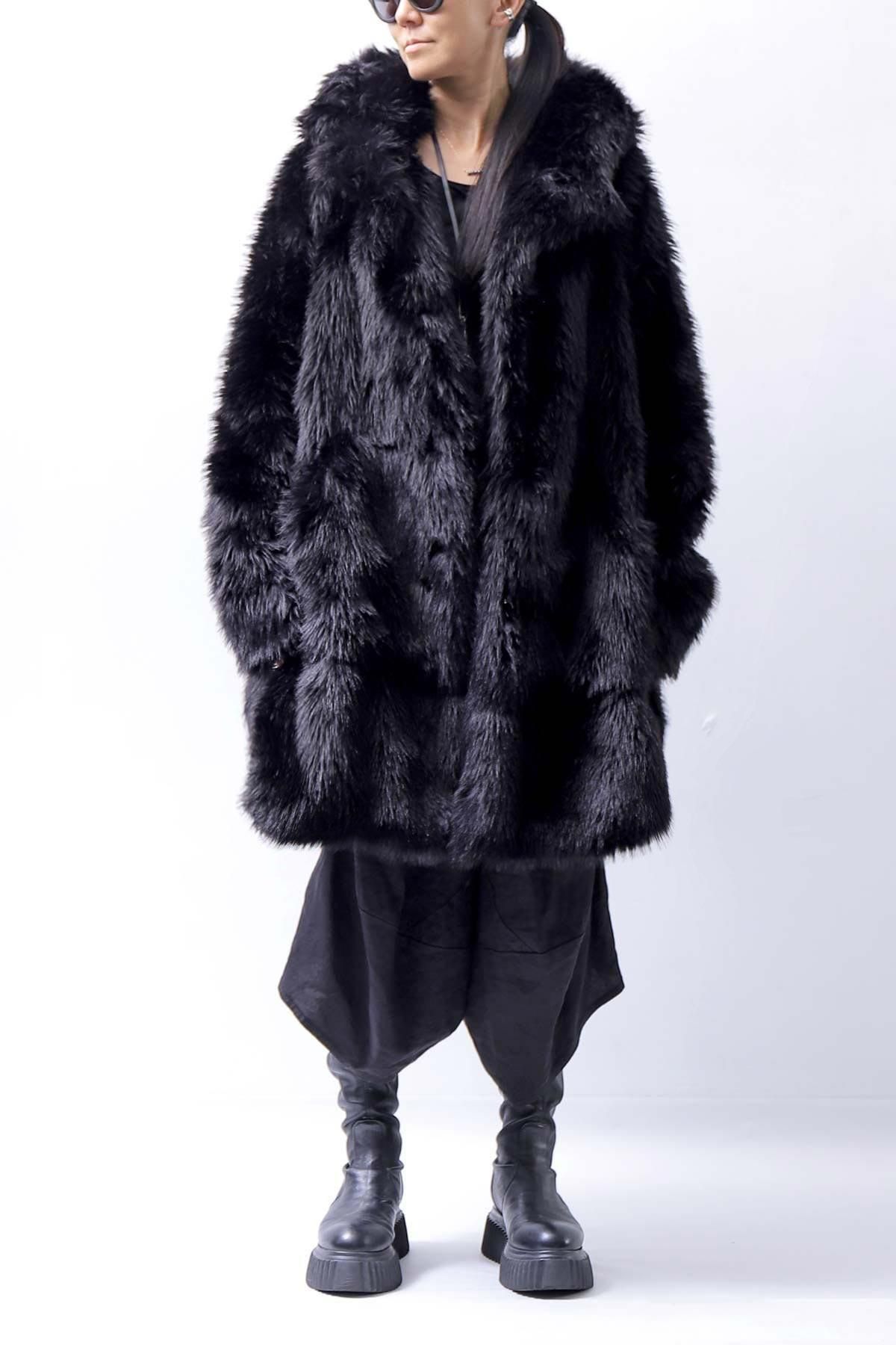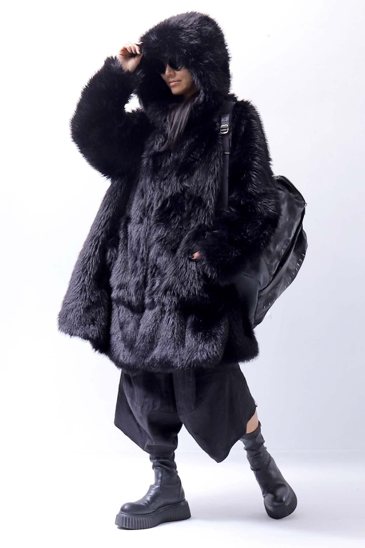 数年前までは考えられないほどのクオリティの良さを実感する、柔らかくしなやかなエコファーのフード付きコートが登場!