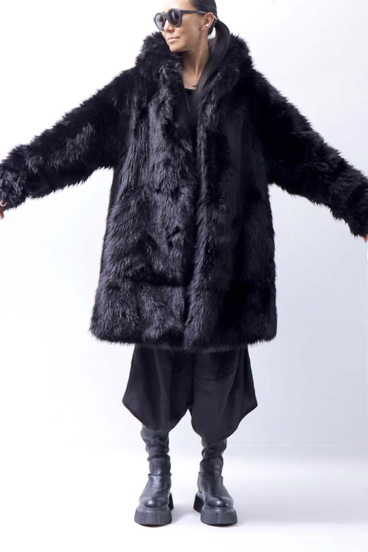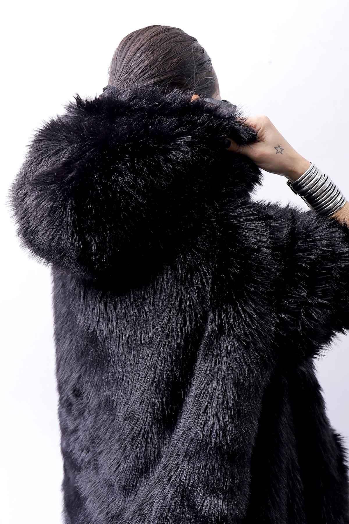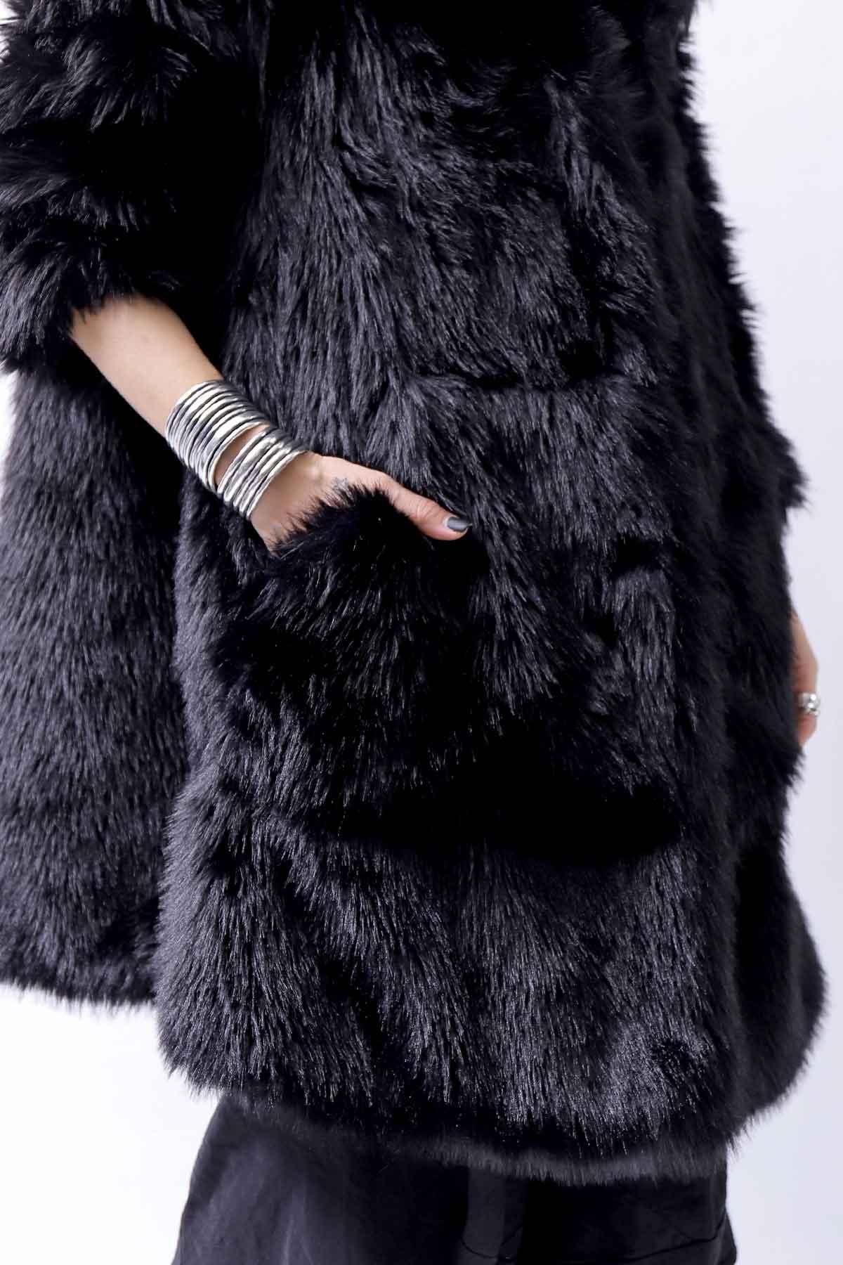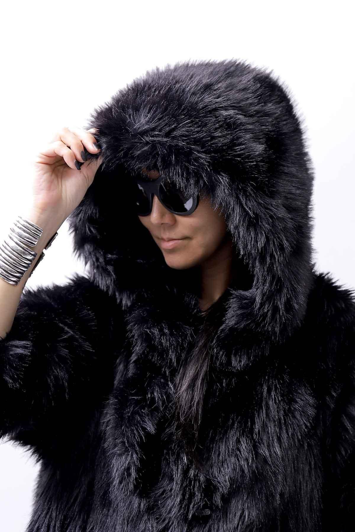 数年前までは考えられないほどのクオリティの良さを実感する、柔らかくしなやかなエコファーのフード付きコートが登場!