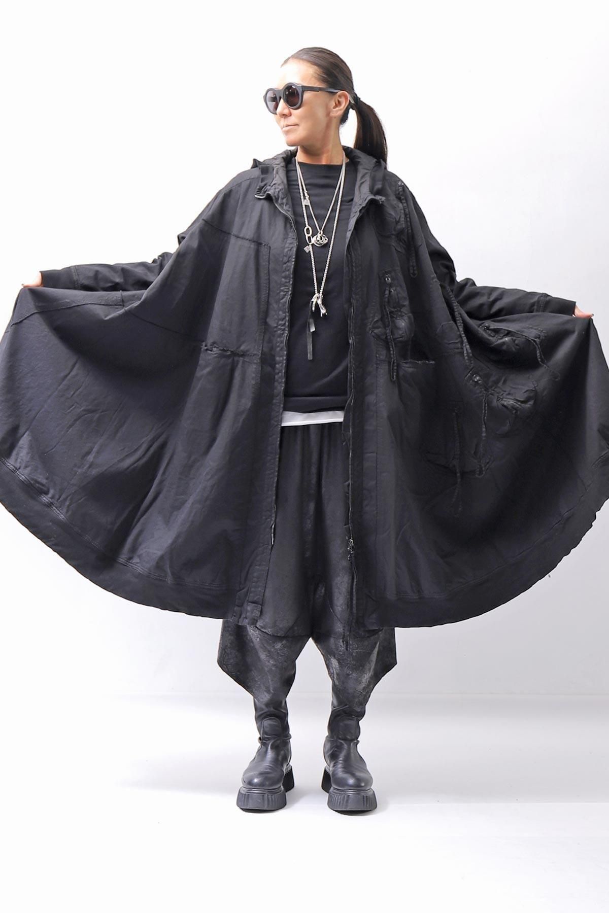 通常のコートの2倍以上のたっぷりと贅沢な生地量を使用し、身幅はゆったりと動きのでるシルエットに。