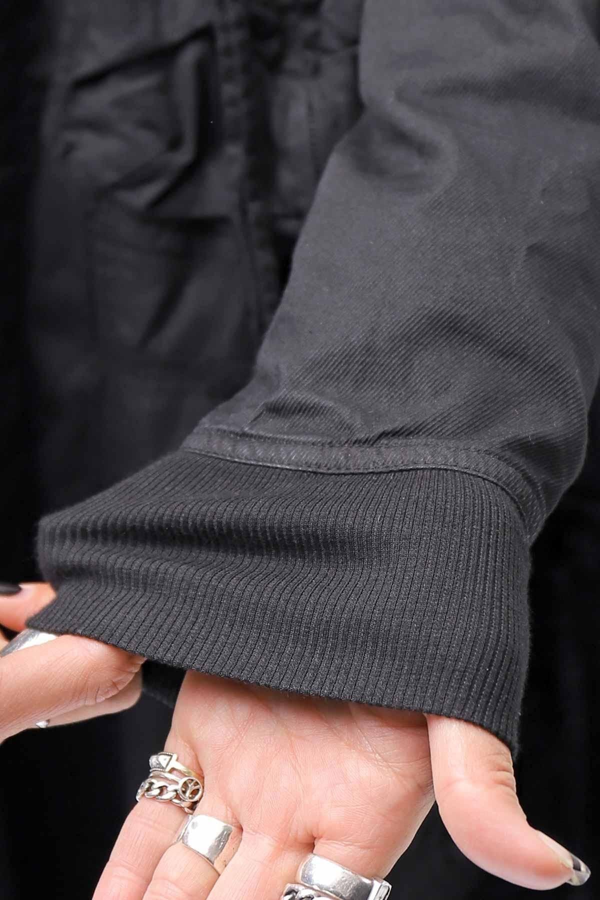 フロントは、Wジップタイプ。 ボディ裾とアーム袖は、コットンリブでアクセントに。