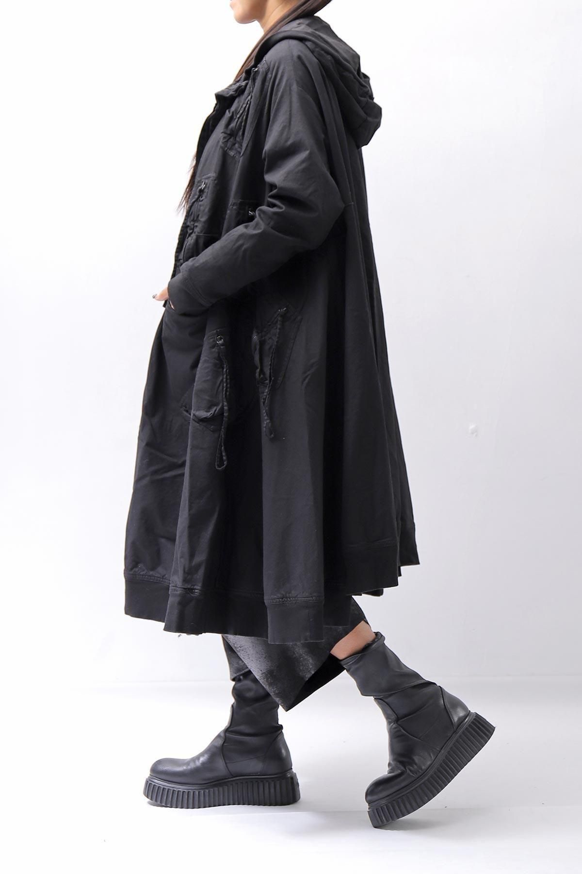 RUNDHOLZのアイコン素材、“260“素材シリーズのジップポケットがアクセントとなったロングコート。