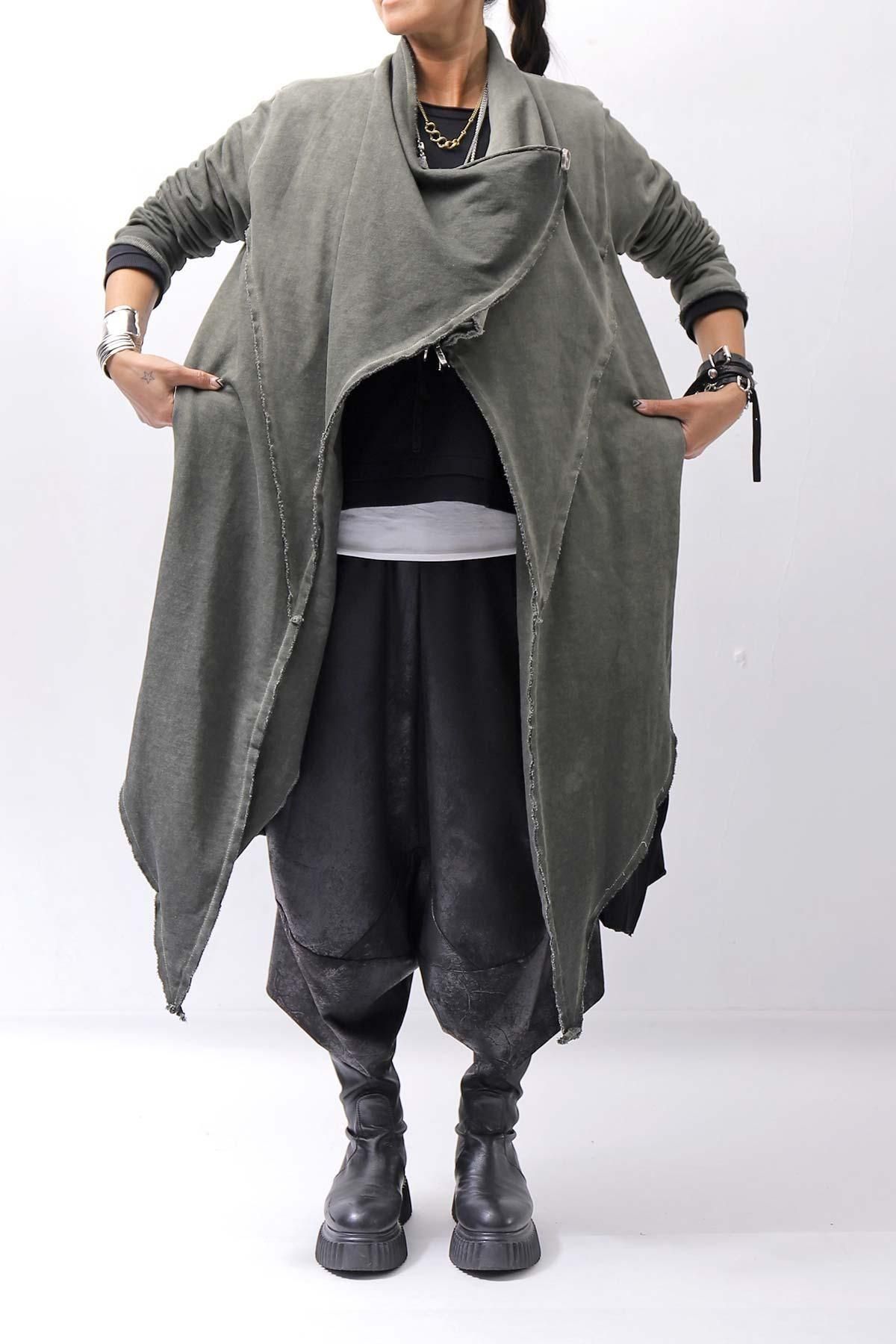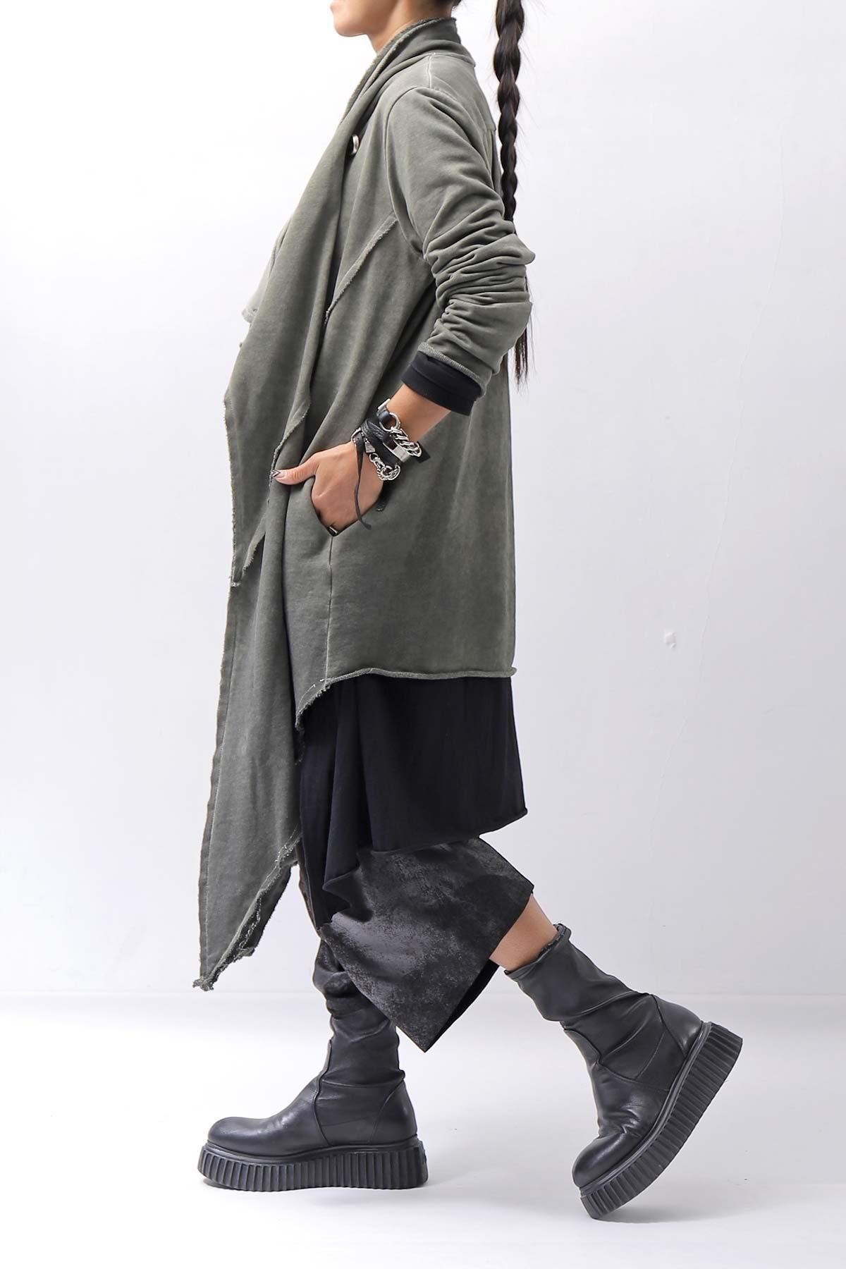 <img class='new_mark_img1' src='https://img.shop-pro.jp/img/new/icons8.gif' style='border:none;display:inline;margin:0px;padding:0px;width:auto;' />UNISEX ASYMMETRY SWEAT CARDIGAN_SALVIA(MILITARY)