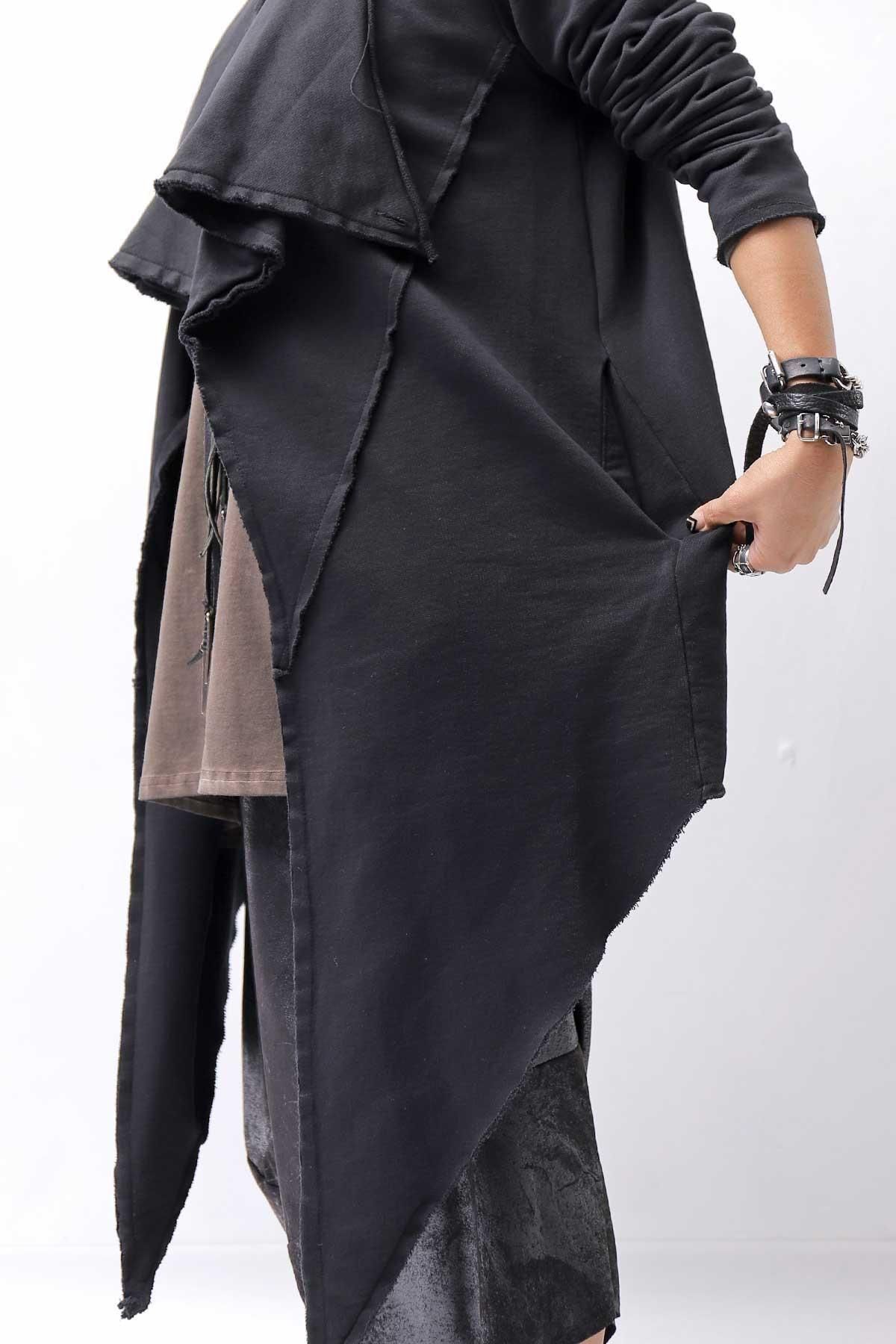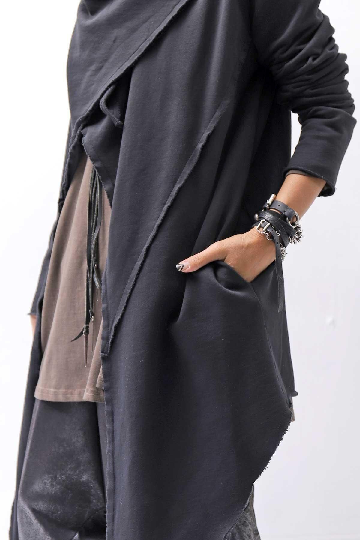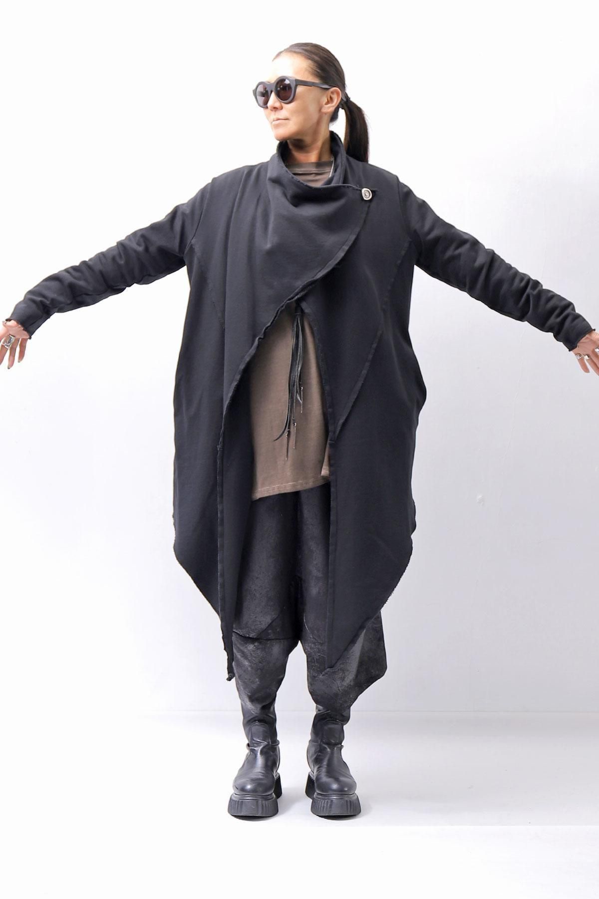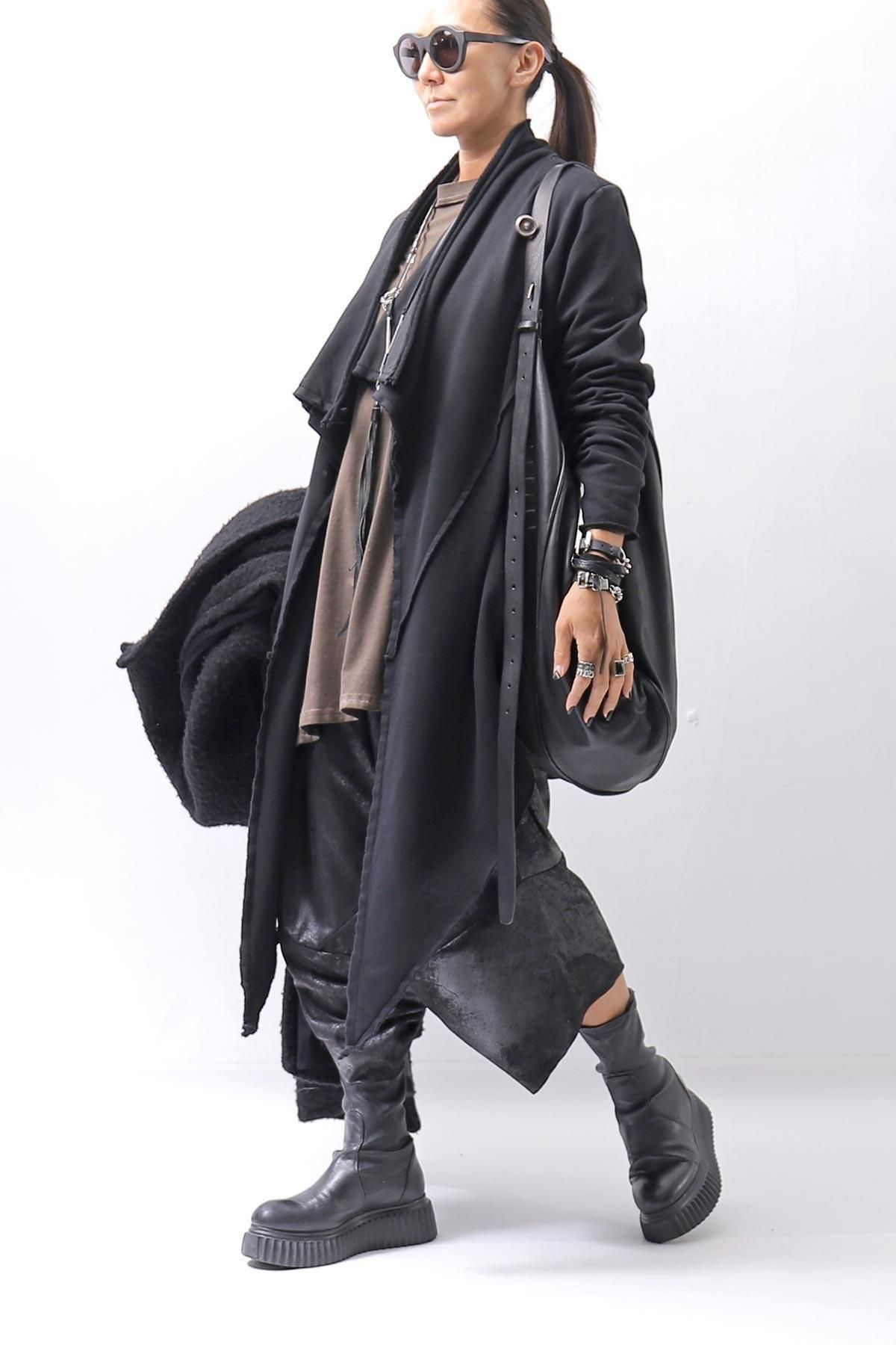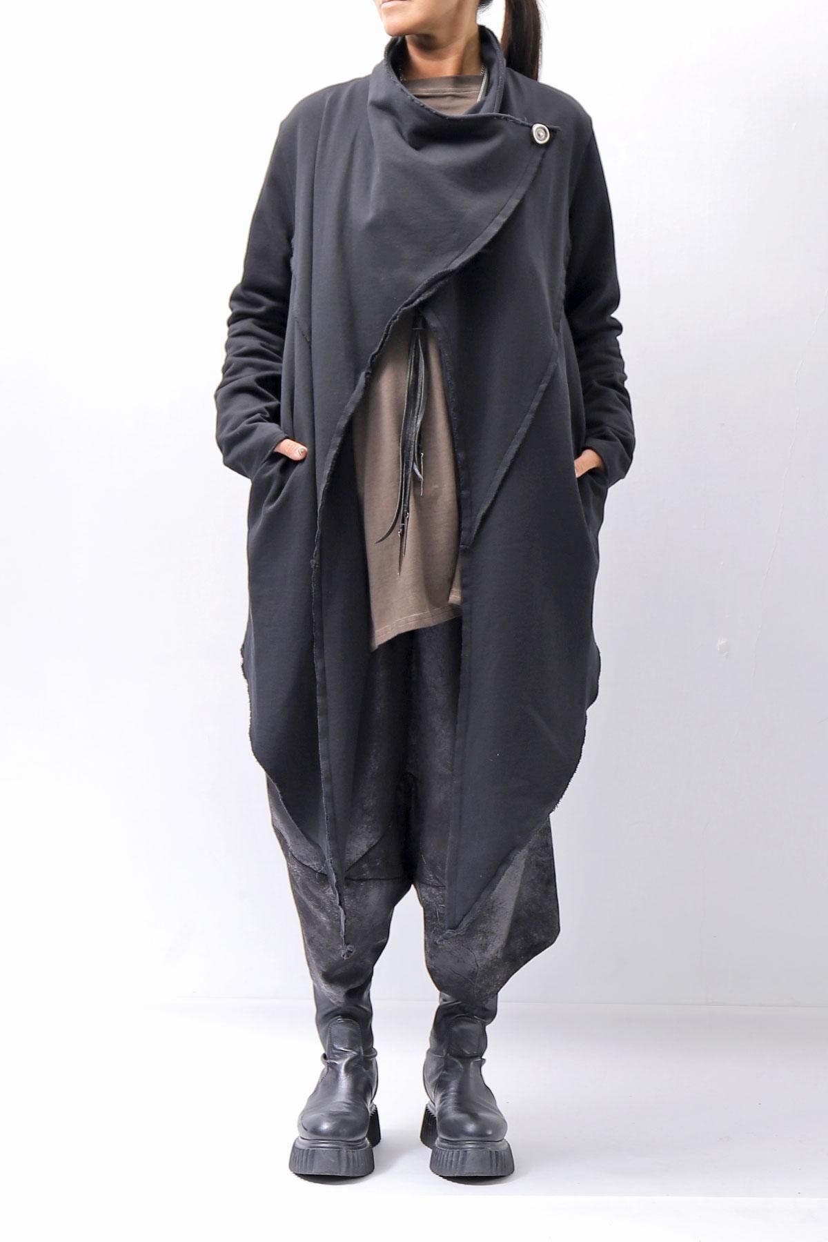 フロント胸上にあるボタンを留めると、ゆったりとしたドレープになり、また違った雰囲気に。