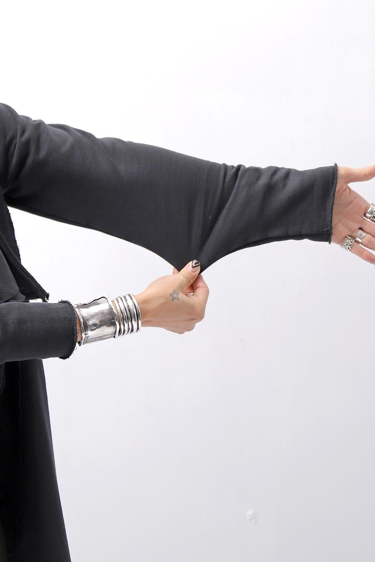 コットン素材の分厚すぎないスウェット素材のカーディガンは、これからの時季にはコートの中にIN、室内ではそのままカーディガンとして着用できる万能アイテム!