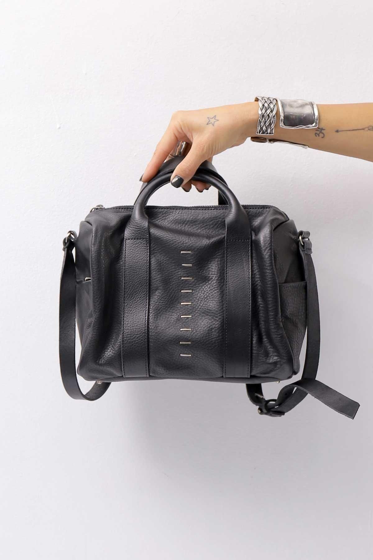 • This mini Boston bag features expressive vegetable-tanned bull leather that develops character with use, enhancing the bag's overall presence over time.