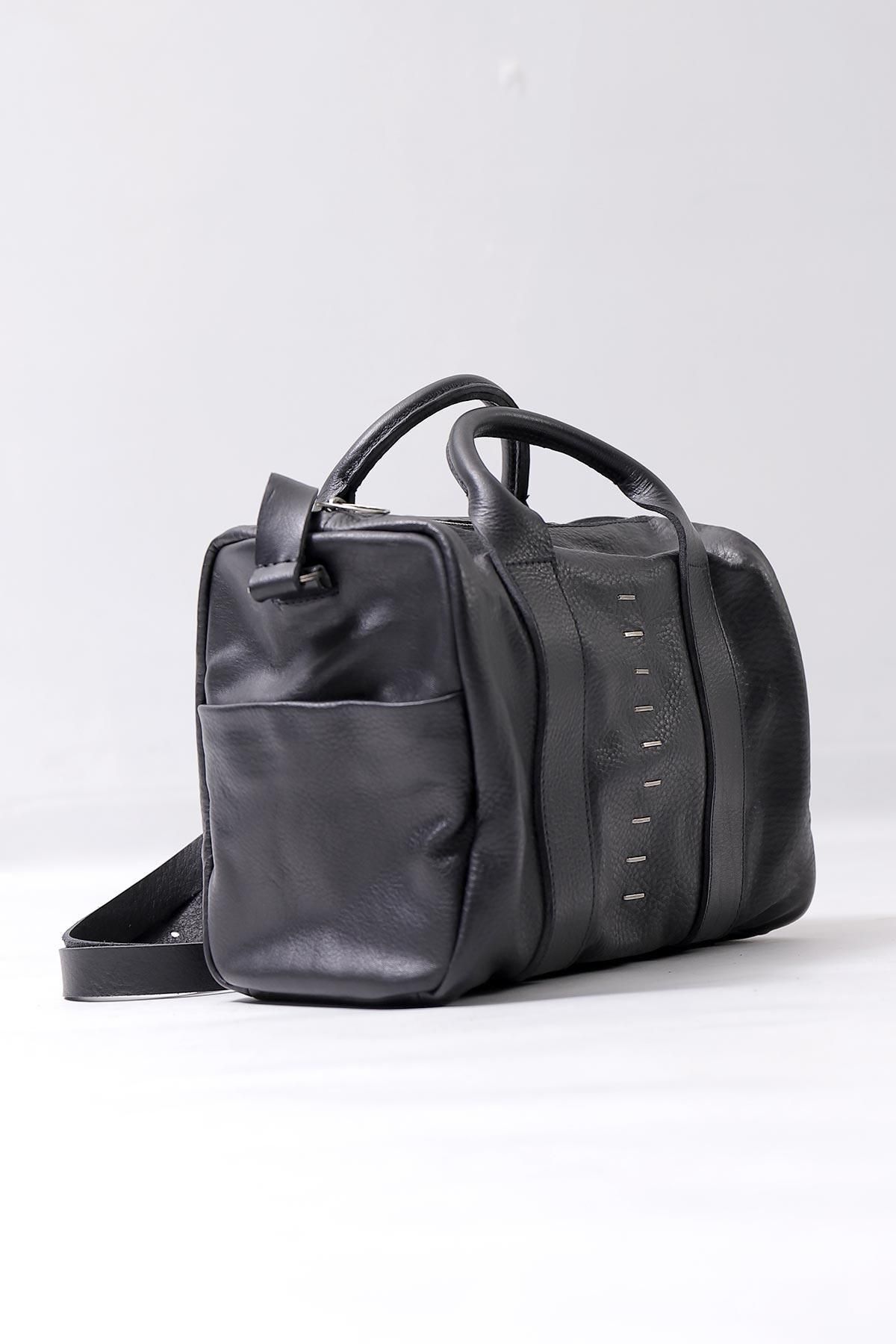 ベジタリアンタンニングされた表情のあるブルレザーを使用し、使い込むほどにレザーはもちろん、バッグ全体の風格が増してくるバッグはミニボストンで。